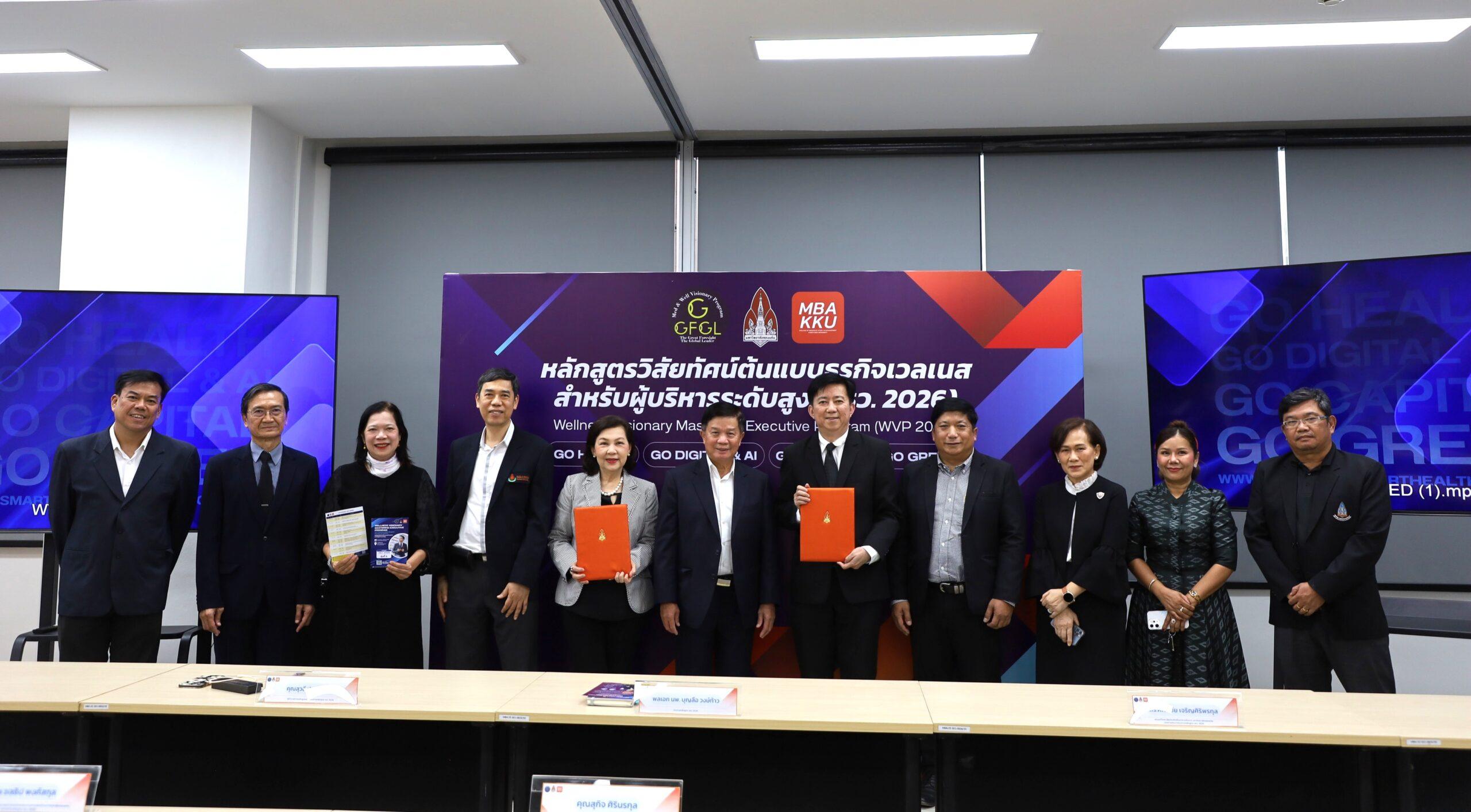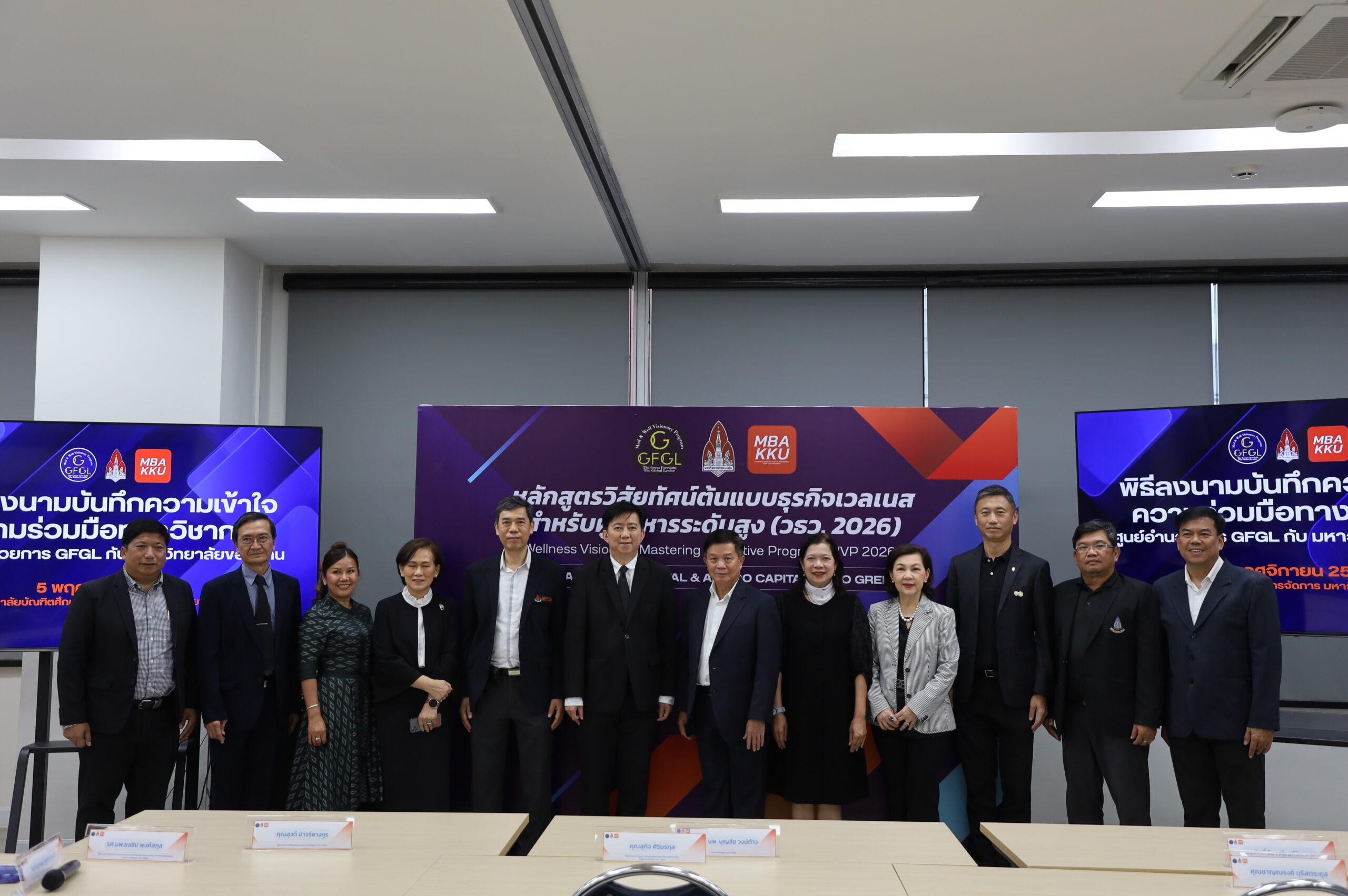 วิทยาลัยบัณฑิตศึกษาการจัดการ มหาวิทยาลัยขอนแก่น (MBA KKU) ร่วมกับศูนย์อำนวยการ The Great Foresight The Global Leader (GFGL) ลงนามบันทึกความเข้าใจ (MOU) เพื่อจัดทำหลักสูตร “วิสัยทัศน์ต้นแบบธุรกิจเวลเนสสำหรับผู้บริหารระดับสูง (Wellness Visionary Mastering Executive Program: WVP 2026)” รุ่นที่ 2 เมื่อวันที่ 5 พฤศจิกายน 2568 ณ วิทยาลัยบัณฑิตศึกษาการจัดการ มหาวิทยาลัยขอนแก่น