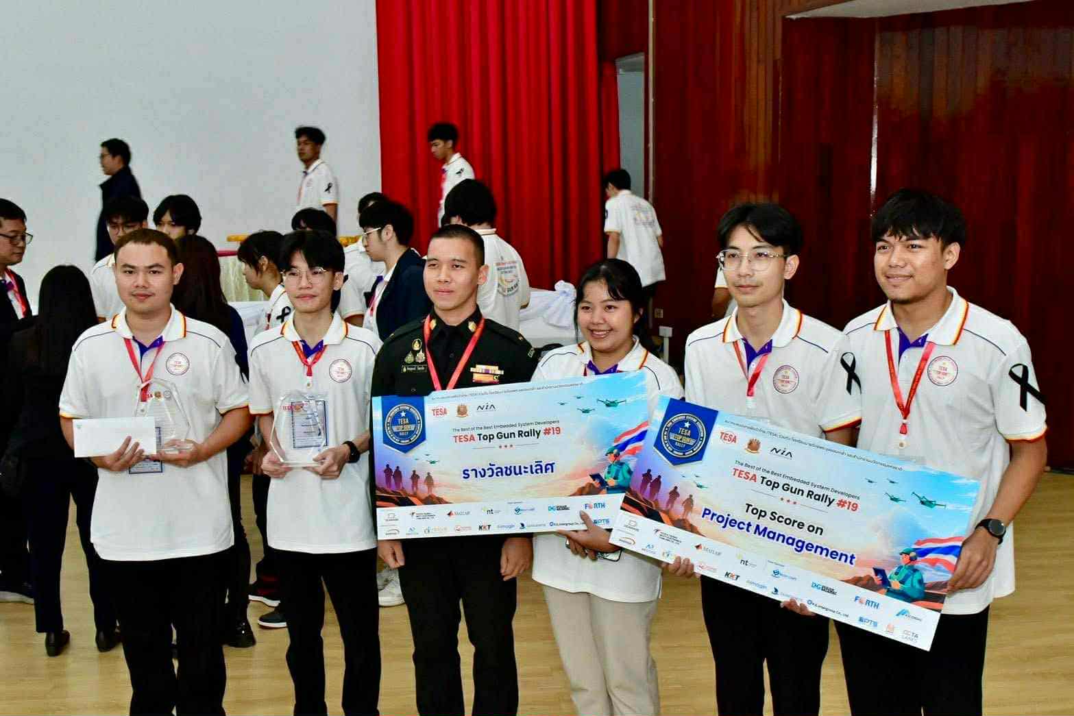 นักศึกษาหลักสูตรวิศวกรรมคอมพิวเตอร์ได้เข้าร่วมกิจกรรมการประชันทักษะทางด้านระบบสมองกลฝังตัว ครั้งที่ 19 (TESA Top Gun Rally 2025) ชิงถ้วยพระราชทาน พลเอกหญิง สมเด็จพระกนิษฐาธิราชเจ้า กรมสมเด็จพระเทพรัตนราชสุดา ฯ สยามบรมราชกุมารี ภายใต้การนำของรองศาสตราจารย์ ดร. ดารณี หอมดี เป็นอาจารย์ที่ปรึกษา ทั้งหมด 3 ทีม เป็นทีมจริง 2 ทีม (See-It2025 และ GearDinDaeng 2025) และทีมสังเกตการณ์ 1 ทีม (Ob-See-It2025) ซึ่งจัดโดยสมาคมสมองกลฝังตัวไทย (Thai Embedded System Association: TESA) ในปีนี้มีผู้เข้าแข่งขันทั้งสิ้น 69 ทีม ระหว่างวันที่ 9–15 พฤศจิกายน 2568 ณ โรงเรียนนายร้อยพระจุลจอมเกล้า การประชันนี้เป็นเวทีระดับประเทศสำหรับ “นักพัฒนาระบบสมองกลฝังตัว” ชิงถ้วยพระราชทานฯ ที่เข้มข้นที่สุดในประเทศ เพื่อนำความรู้จากห้องเรียนมาประยุกต์แก้ปัญหาจริง ปีนี้มาพร้อมโจทย์ท้าทาย “Defense Innovations: นวัตกรรมเพื่อป้องกันประเทศ” การเข้าร่วมเวทีระดับประเทศนี้เป็นโอกาสสำคัญที่นักศึกษาจะได้ฝึกฝนการทำงานเป็นทีม พัฒนาทักษะการสร้างสรรค์นวัตกรรมภายใต้ความกดดัน ซึ่งเป็นประสบการณ์ล้ำค่าที่หาไม่ได้ในห้องเรียน