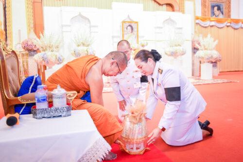 พิธีการเริ่มขึ้นในเวลา 16.30 น. ประธานในพิธีจุดธูปเทียนบูชาพระรัตนตรัย และจุดเครื่องทองน้อยเบื้องหน้าพระบรมฉายาลักษณ์สมเด็จพระบรมราชชนนีพันปีหลวง จากนั้นจุดธูปเทียนบูชาที่เครื่องนมัสการหน้าตู้พระอภิธรรม พระสงฆ์ 4 รูป สวดธรรมคาถา เมื่อจบแล้ว เจ้าหน้าที่ลาดผ้าขาวรองโยงและผ้าภูษาโยง จากนั้นประธานในพิธีทอดผ้าบังสุกุล พระสงฆ์สดับปกรณ์ อนุโมทนา และประธานในพิธีกรวดน้ำอุทิศถวายเป็นพระราชกุศล