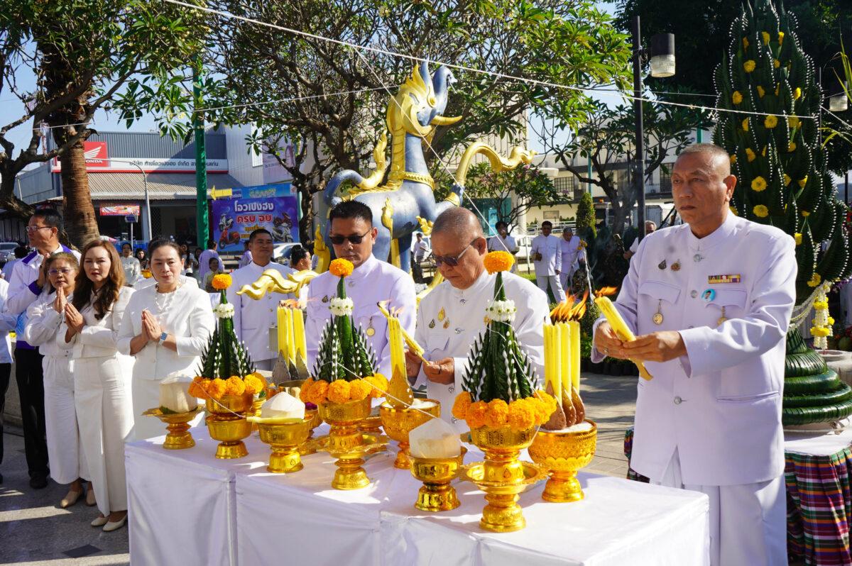ในช่วงเช้า เวลา 06.30 น. มีพิธีเจริญพระพุทธมนต์และทำบุญตักบาตร ต่อมาในเวลา 08.30 น. จัดพิธีบวงสรวงศาลหลักเมืองขอนแก่น พิธีเบิกฤกษ์เวียนเทียน การรำบวงสรวงศาลหลักเมือง รวมถึงพิธีถวายข้าวตอกดอกไม้และพานบายศรี ตามประเพณีท้องถิ่นอีสาน ท่ามกลางบรรยากาศที่เปี่ยมด้วยความศรัทธาจากผู้ร่วมพิธี