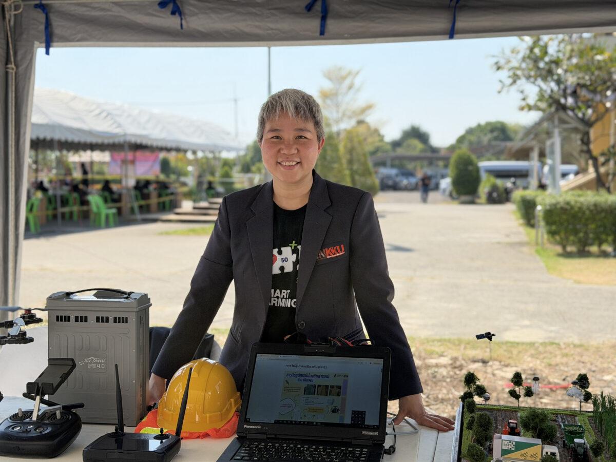 รศ.ดร.ขวัญศรี แสงประชาธนารักษ์ อาจารย์ประจำคณะวิศวกรรมศาสตร์ มหาวิทยาลัยขอนแก่น และหัวหน้าโครงการ “การพัฒนาโมเดลธุรกิจโดรนเกษตรชุมชน” ภายใต้ทุนสนับสนุนจากหน่วยบริหารและจัดการทุนด้านการพัฒนาระดับพื้นที่ (บพท.) ได้นำองค์ความรู้ด้านการใช้โดรนในระบบเกษตรอัจฉริยะมานำเสนอ โดยชี้ว่าการประยุกต์เทคโนโลยีโดรนช่วยลดต้นทุนแรงงาน ลดการใช้สารเคมี เพิ่มประสิทธิภาพงานฉีดพ่น และสามารถพัฒนาเป็นอาชีพใหม่ให้กับเกษตรกรได้จริง ทั้งยังสะท้อนให้เห็นบทบาทของงานวิจัยจากมหาวิทยาลัยที่พร้อมต่อยอดสู่การพัฒนาเชิงพื้นที่ได้อย่างเป็นรูปธรรม