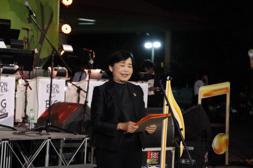 ศาสตราจารย์ผิวพรรณ มาลีวงษ์ รองอธิการบดีฝ่ายวิจัยและนวัตกรรม กล่าวว่า “ฝ่ายวิจัยและนวัตกรรม มหาวิทยาลัยขอนแก่น มีความยินดีและเป็นเกียรติอย่างยิ่งที่ได้จัดกิจกรรมนี้ขึ้น เพื่อให้ทุกคนได้น้อมรำลึกถึงพระมหากรุณาธิคุณของพระบาทสมเด็จพระบรมชนกาธิเบศร มหาภูมิพลอดุลยเดชมหาราช บรมนาถบพิตร พระองค์ท่านทรงเป็นพระมหากษัตริย์ผู้ทรงคุณูปการต่อแผ่นดินและพสกนิกรชาวไทยอย่างหาที่สุดมิได้ การจัดกิจกรรม ‘ดนตรีในสวน : H.M.Song อว. บรรเลงเพลงของพ่อ’ จึงเป็นการแสดงออกถึงความจงรักภักดีและน้อมนำพระราชปณิธานของพระองค์ท่านมาเป็นแนวทางในการดำเนินชีวิตและการทำงานเพื่อพัฒนาสังคมต่อไป”