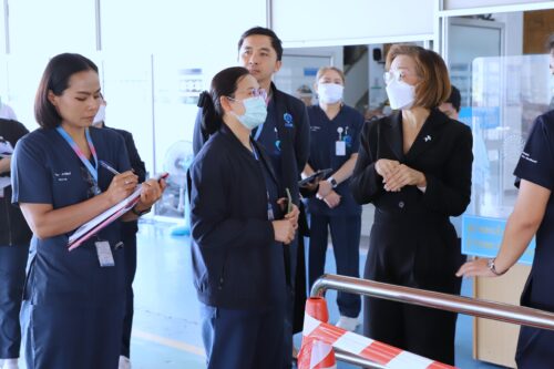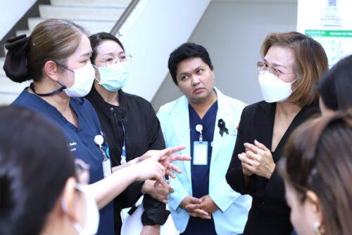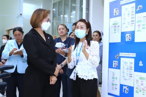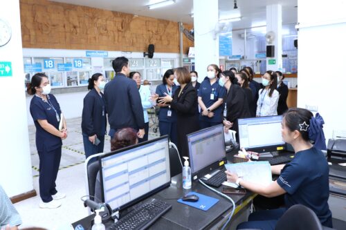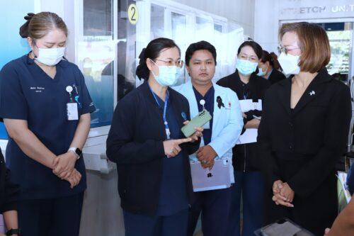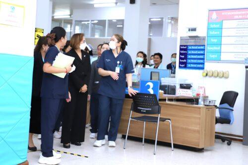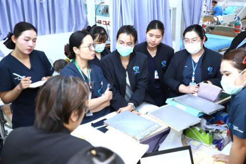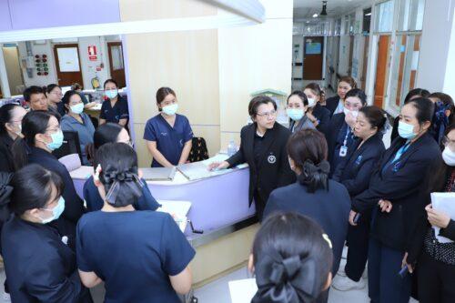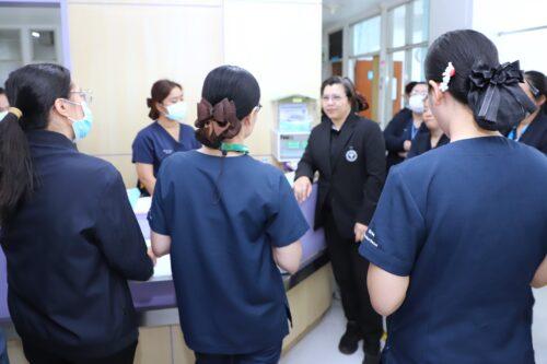 โดยในวันที่สองของการอบรม มีการแบ่งผู้เข้าร่วมอบรมออกเป็น 2 กลุ่ม โดยกลุ่มแรกลงพื้นที่ตรวจเยี่ยมจุดบริการด่านหน้า ได้แก่ แผนกผู้ป่วยนอก (OPD) และห้องฉุกเฉิน (ER) เพื่อประเมินกระบวนการดูแลผู้ป่วย การบริการ และความพร้อมของระบบการพยาบาล ส่วนกลุ่มที่สองลงพื้นที่ตรวจประเมิน ณ หอผู้ป่วยอายุรศาสตร์หัวใจ ชั้น 6 เพื่อแลกเปลี่ยนมุมมองด้านการดูแลผู้ป่วยเฉพาะทาง และการบริหารจัดการคุณภาพในหอผู้ป่วย