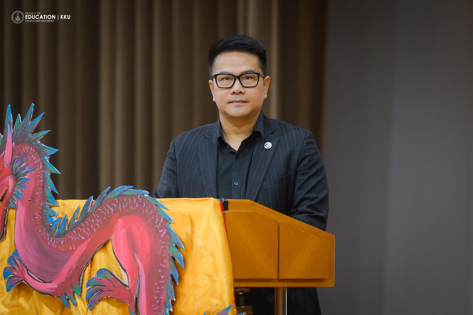 รศ.ดร.วายุ กาญจนศร รองคณบดีฝ่ายกิจการนักศึกษาและสังคมยั่งยืน คณะศึกษาศาสตร์ มหาวิทยาลัยขอนแก่น กล่าวว่า “คณะศึกษาศาสตร์ ขอแสดงความยินดีและต้อนรับน้องๆ นักเรียนทุกท่านอย่างอบอุ่นเข้าสู่ครอบครัวคณะศึกษาศาสตร์ มหาวิทยาลัยขอนแก่น การได้เป็นส่วนหนึ่งของค่ายที่มีประวัติยาวนานถึง 22 ปี นั้น ถือเป็นจุดเริ่มต้นที่สำคัญสำหรับการค้นพบตนเองและวางแผนอนาคตทางการศึกษา คณะศึกษาศาสตร์รู้สึกยินดีที่ได้มีโอกาสเดินร่วมทางไปกับทุกท่านตั้งแต่ก้าวแรก ในกิจกรรมโครงการ “ค่ายสานฝันฉันอยากเป็นครู” ซึ่งในปีนี้เป็นปีที่ 22 เพื่อแสดงความภาคภูมิใจและความเป็นหนึ่งเดียวของเรา โดยท่านได้กล่าวให้แง่คิดว่า เด็กจะดีหรือไม่ดี เริ่มที่มือเรา… เพราะฉะนั้นเราต้องสร้างครูที่ดีออกไป”