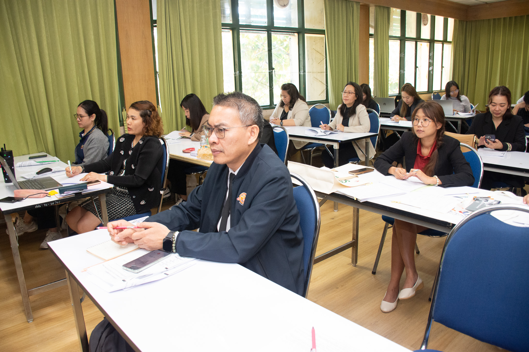ท่านรองอธิการบดีฯ ยังได้แสดงความขอบคุณต่อความร่วมมืออันดียิ่งจากพันธมิตรภายในองค์กร เช่น กองคลัง และ กองกฎหมาย ที่ช่วยเป็น “พี่เลี้ยง” ให้แก่เจ้าหน้าที่ เพื่อลดข้อผิดพลาดในการปฏิบัติงาน ซึ่งตลอดการอบรมได้ให้ความสนใจและบันทึกรายละเอียดต่างๆ ที่จะนำไปประยุกต์ใช้ ให้การดำเนินงานในอนาคตเป็นไปอย่างราบรื่น และ ปราศจากปัญหาหรือข้อร้องเรียน ในที่สุด