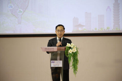 โดยประธานในพิธี รองศาสตราจารย์นายแพทย์ ชาญชัย พานทองวิริยะกุล ให้เกียรติกล่าวต้อนรับและขอบคุณคณะผู้แทนจากไต้หวัน พร้อมทั้งกล่าวถึงบทบาทของศูนย์ฯ INTACT Base ขอนแก่น ซึ่งเกิดขึ้นจากความร่วมมือระหว่างมหาวิทยาลัยขอนแก่นและมหาวิทยาลัยแห่งชาติซุนยัดเซ็น โดยมีเป้าหมายเพื่อเป็นศูนย์กลางในการแลกเปลี่ยนองค์ความรู้ เทคโนโลยี และการพัฒนากำลังคนให้สอดคล้องกับความต้องการของภาคอุตสาหกรรม ความตอนหนึ่งว่า “กระผมขอแสดงความขอบคุณเป็นอย่างยิ่งต่อความร่วมมืออย่างใกล้ชิดของเรากับมหาวิทยาลัยแห่งชาติซุนยัดเซ็น ซึ่งเป็นพันธมิตรหลักในการจัดตั้งศูนย์ฯ Khon Kaen INTACT Base ในครั้งนี้ มหาวิทยาลัยขอนแก่นและมหาวิทยาลัยแห่งชาติซุนยัดเซ็นได้มีการพัฒนาความร่วมมือระหว่างกันมาอย่างต่อเนื่องและได้มีการลงนามในบันทึกข้อตกลงความร่วมมือทางวิชาการ (MOU) ระดับมหาวิทยาลัยร่วมกันแล้ว ซึ่งสะท้อนถึงวิสัยทัศน์ด้านการศึกษา การวิจัย และการพัฒนาบุคลากรในระยะยาวระหว่างทั้งสองสถาบัน”