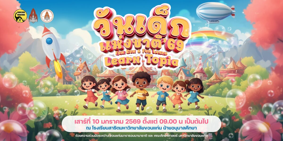 มหาวิทยาลัยขอนแก่น ขอเชิญชวนเด็ก ๆ เยาวชน และครอบครัว ร่วมงานวันเด็กแห่งชาติ ประจำปี 2569 ในวันเสาร์ที่ 10 มกราคม 2569 เปิดพื้นที่แห่งการเรียนรู้ ความสนุก และแรงบันดาลใจ ผ่านกิจกรรมสร้างสรรค์จากหลายหน่วยงานภายในมหาวิทยาลัย ที่พร้อมต้อนรับน้อง ๆ และครอบครัวตลอดทั้งวัน เพื่อส่งเสริมพัฒนาการ การเรียนรู้ และการใช้เวลาคุณภาพร่วมกัน