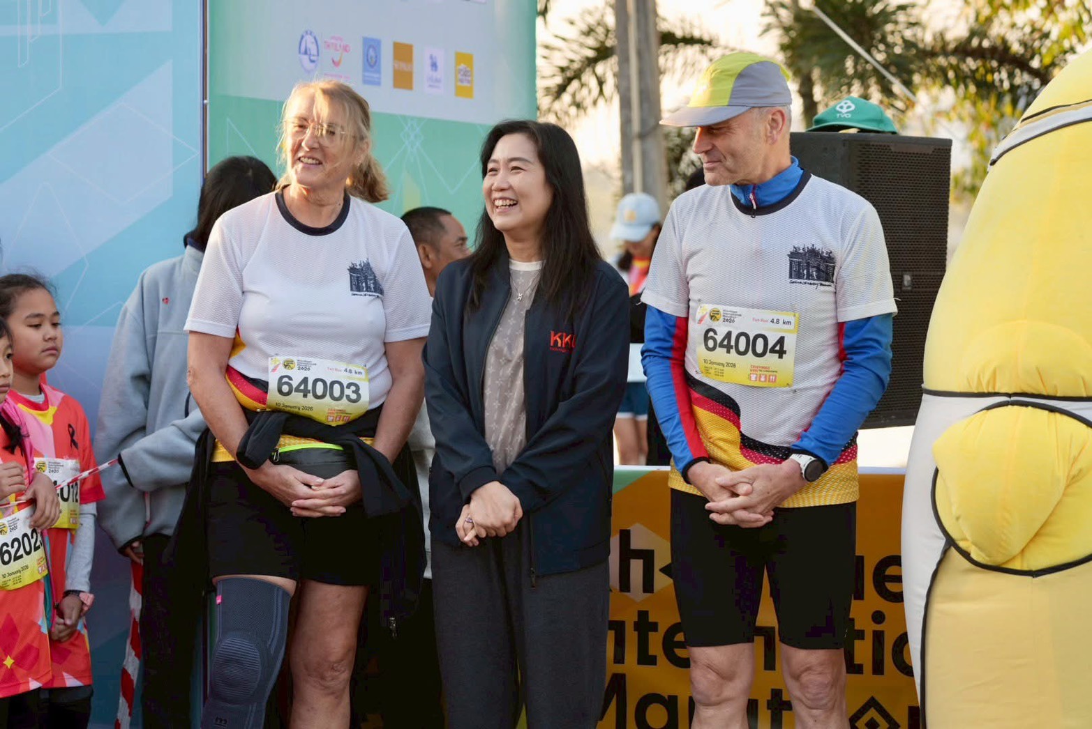 เอกอัครราชทูตและอาคันตุกะนานาชาติ ให้เกียรติเข้าขอนแก่นมาราธอนนานาชาติ 2026 ร่วมการแข่งขันทั้ง 2 วัน โดยวันที่ 10 มกราคม 2569 ได้รับเกียรติจาก Mr. Alexander K. Schlesier, Assistant to the Defence Attaché to Thailand and the Philippines พร้อมภริยา Mrs. Ute Schlesier สถานเอกอัครราชทูตเยอรมนีประจำประเทศไทย เข้าร่วมกิจกรรม ขอนแก่นมาราธอนนานาชาติ 2026 ในประเภทเดินวิ่งเพื่อสุขภาพ Fun Run 5.4 กิโลเมตร