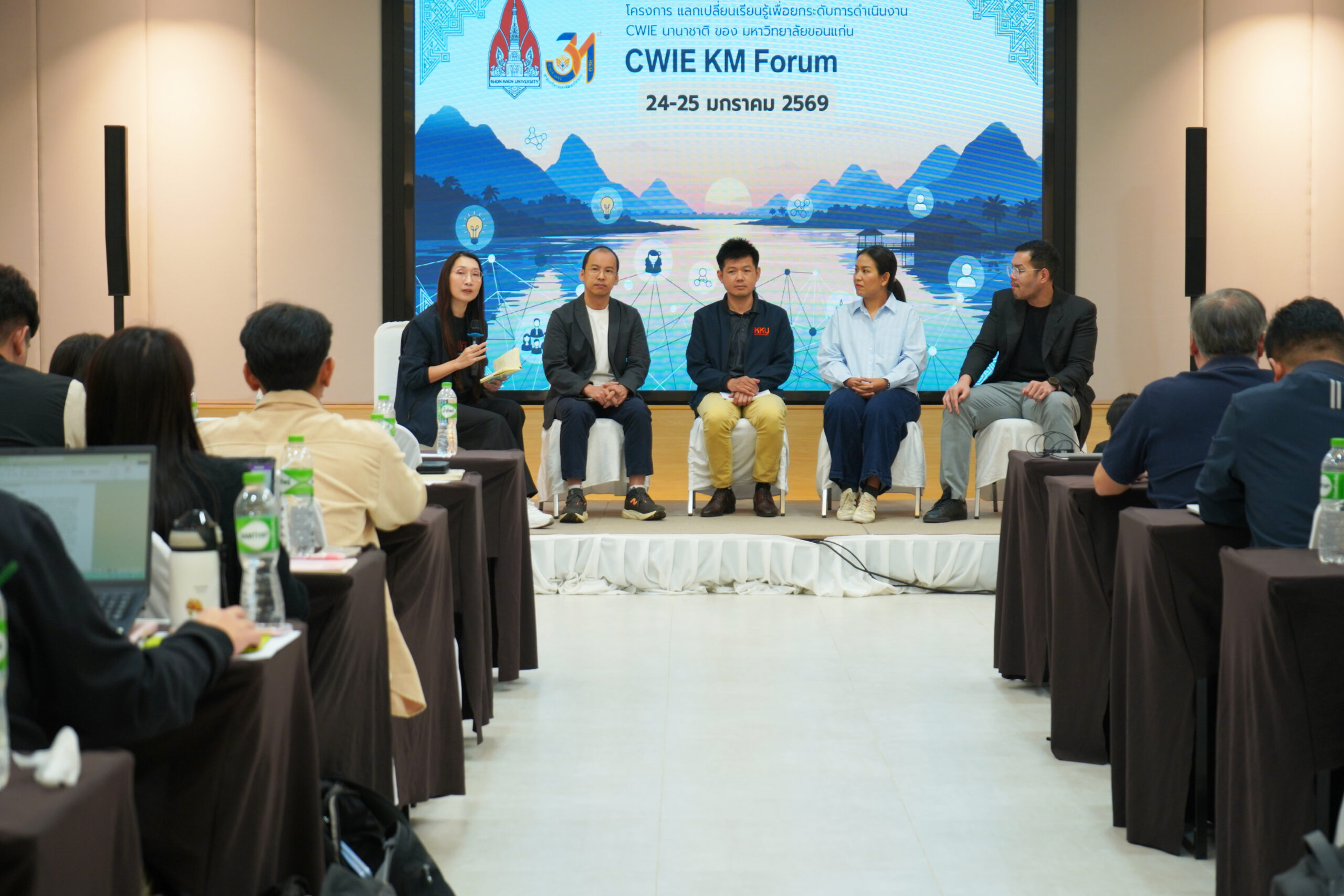 สำนักบริหารและพัฒนาวิชาการ มหาวิทยาลัยขอนแก่น จัดโครงการ CWIE KM Forum : แลกเปลี่ยนเรียนรู้เพื่อยกระดับการดำเนินงาน CWIE นานาชาติ ระหว่างวันที่ 24–26 มกราคม 2569 ณ ริเวอร์ทรี รีสอร์ท อำเภอเชียงคาน จังหวัดเลย โดยมีผู้บริหาร คณาจารย์ และบุคลากรผู้รับผิดชอบงาน CWIE จากหลากหลายคณะเข้าร่วมจำนวน 40 ท่าน เพื่อร่วมกันแลกเปลี่ยนองค์ความรู้ ถอดบทเรียน และกำหนดทิศทางการพัฒนาระบบสหกิจศึกษาและการศึกษาเชิงบูรณาการกับการทำงาน (CWIE) นานาชาติ ของมหาวิทยาลัยอย่างเป็นระบบและยั่งยืน