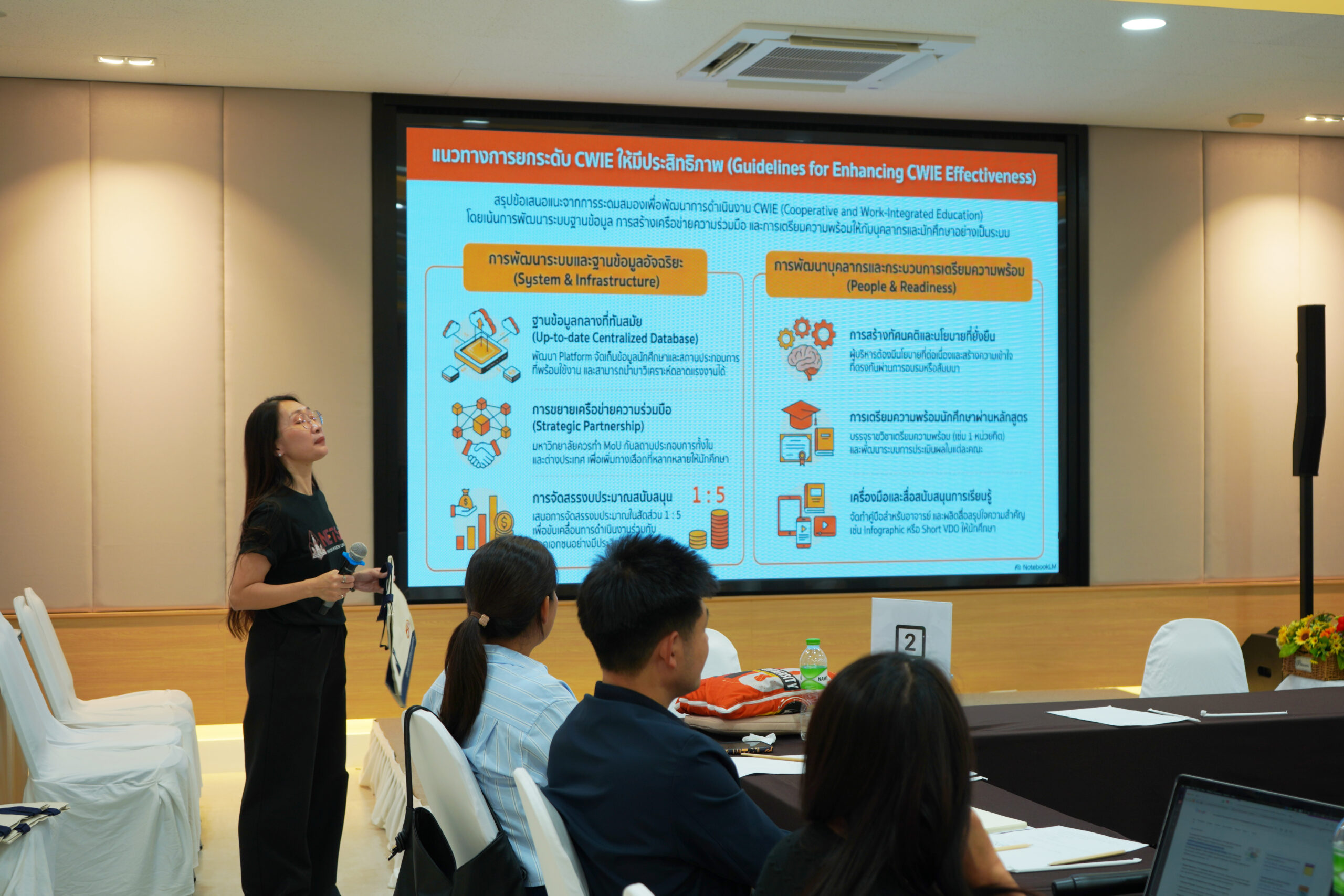 สาระสำคัญของการสัมมนาและ workshop สะท้อนตรงกันว่า การขับเคลื่อน CWIE ให้มีประสิทธิผล จำเป็นต้องสร้างเครือข่ายความร่วมมือกับสถานประกอบการทั้งในและต่างประเทศอย่างต่อเนื่องเตรียมความพร้อมนักศึกษา–อาจารย์ คือหัวใจของ CWIE นานาชาติอีกประเด็นสำคัญที่ได้รับการเน้นย้ำ คือ การเตรียมความพร้อมนักศึกษาก่อนออก CWIE พร้อมระบบประเมินผลที่ชัดเจน เพื่อให้นักศึกษามีทักษะและทัศนคติที่สอดคล้องกับโลกการทำงานจริงใช้ข้อมูล–ดิจิทัล ขับเคลื่อน CWIE นานาชาติสู่ความยั่งยืนผู้เข้าร่วมยังเห็นพ้องถึงความจำเป็นของ แพลตฟอร์มกลางด้าน CWIE สำหรับจัดเก็บข้อมูลนักศึกษาที่ออก CWIE เพื่อนำไปวิเคราะห์แนวโน้มตลาดแรงงาน ความต้องการทักษะ และใช้ประกอบการวางแผนเชิงนโยบายในอนาคต รวมถึงการใช้สื่อดิจิทัล เช่น Infographic และวิดีโอสั้น เพื่อสื่อสารความเข้าใจ CWIE กับนักศึกษาและสถานประกอบการอย่างเข้าถึงง่าย