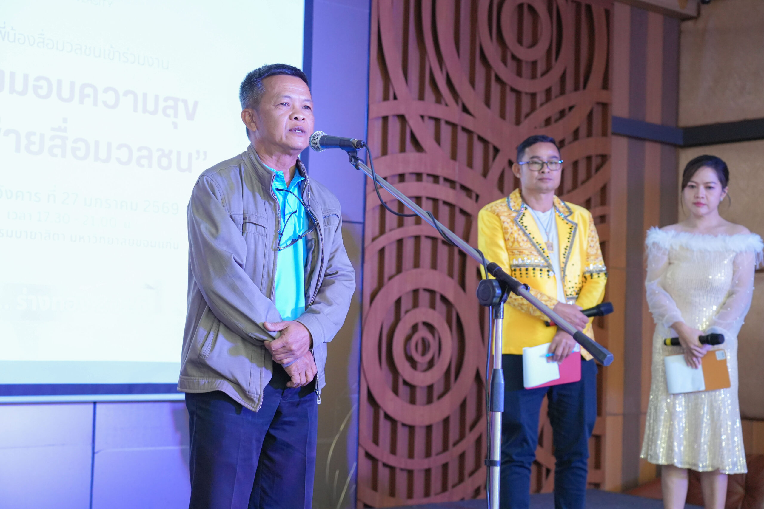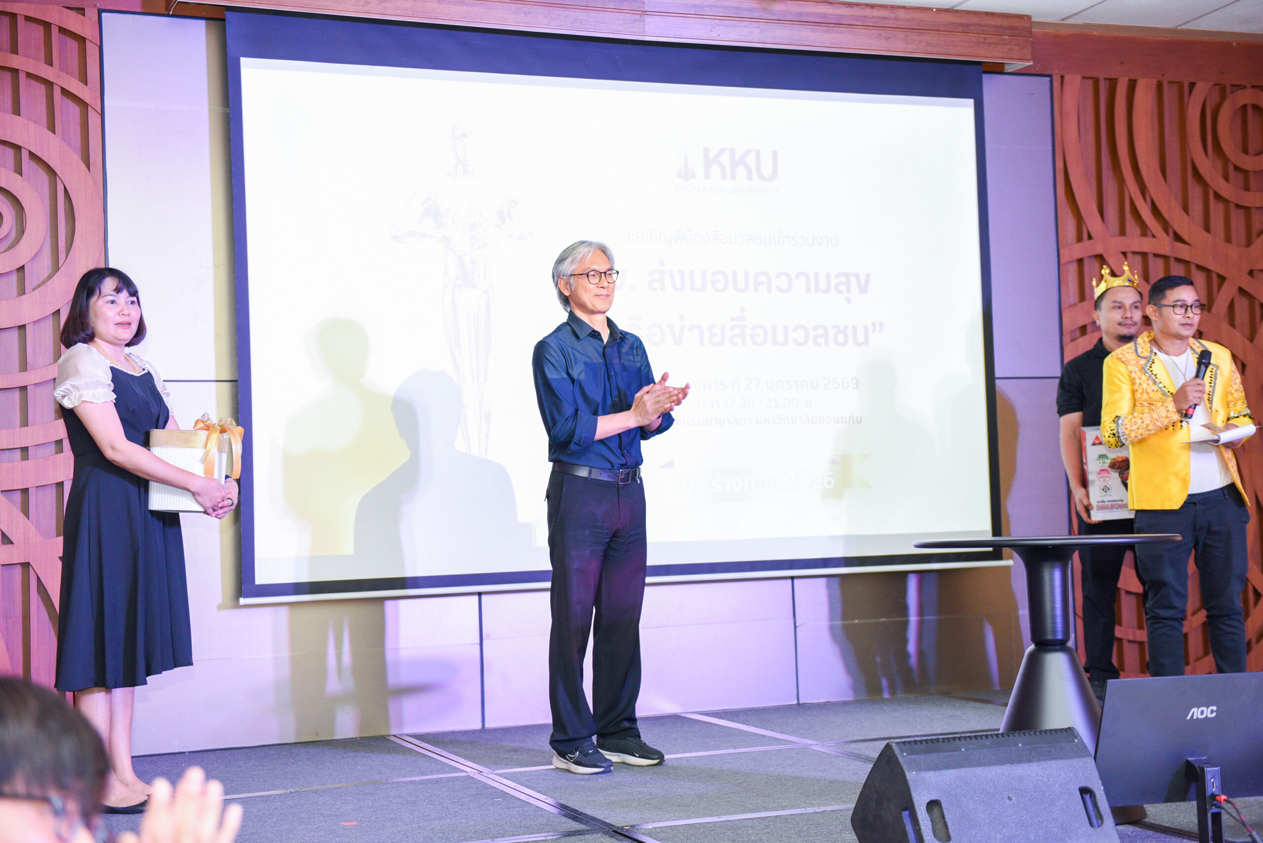 เมื่อวันที่ 27 มกราคม 2569 มหาวิทยาลัยขอนแก่น จัดงาน “มข. ส่งมอบความสุข เครือข่ายสื่อมวลชน” เพื่อแสดงความขอบคุณและกระชับความสัมพันธ์กับสื่อมวลชนทุกแขนง โดยมี รศ.นพ.ชาญชัย พานทองวิริยะกุล อธิการบดีมหาวิทยาลัยขอนแก่น เป็นประธานในงาน พร้อมด้วย รศ.ดร.เพ็ญศรี เจริญวานิช รองอธิการบดีฝ่ายกิจการนักศึกษาและนวัตวณิชย์  อาจารย์ณัฐสมล ธนกุลรังสฤษดิ์ รองอธิการบดีฝ่ายกฎหมายและสื่อสารองค์กร  รศ.นพ.ชลธิป พงศ์สกุลผู้ช่วยอธิการบดีฝ่ายติดตามยุทธศาสตร์และโครงการสำคัญ  รศ.น.สพ.ดร.ประพันธ์ศักดิ์ ฉวีราช ผู้ช่วยอธิการบดีฝ่ายกิจการนักศึกษาและนวัตวณิชย์ พร้อมด้วยคณะผู้บริหาร อาจารย์ และบุคลากร เข้าร่วมต้อนรับและพบปะพูดคุยกับตัวแทนสื่อมวลชนจากทุกสำนัก ทั้งสมาคมช่างภาพผู้สื่อข่าวโทรทัศน์จังหวัดขอนแก่น สมาคมสื่อมวลชนจังหวัดขอนแก่น สถานีโทรทัศน์แห่งประเทศไทย (NBT) และสื่อทุกแขนง ในบรรยากาศที่อบอุ่นและเป็นกันเอง ณ โรงแรมบายาสิตา มหาวิทยาลัยขอนแก่น