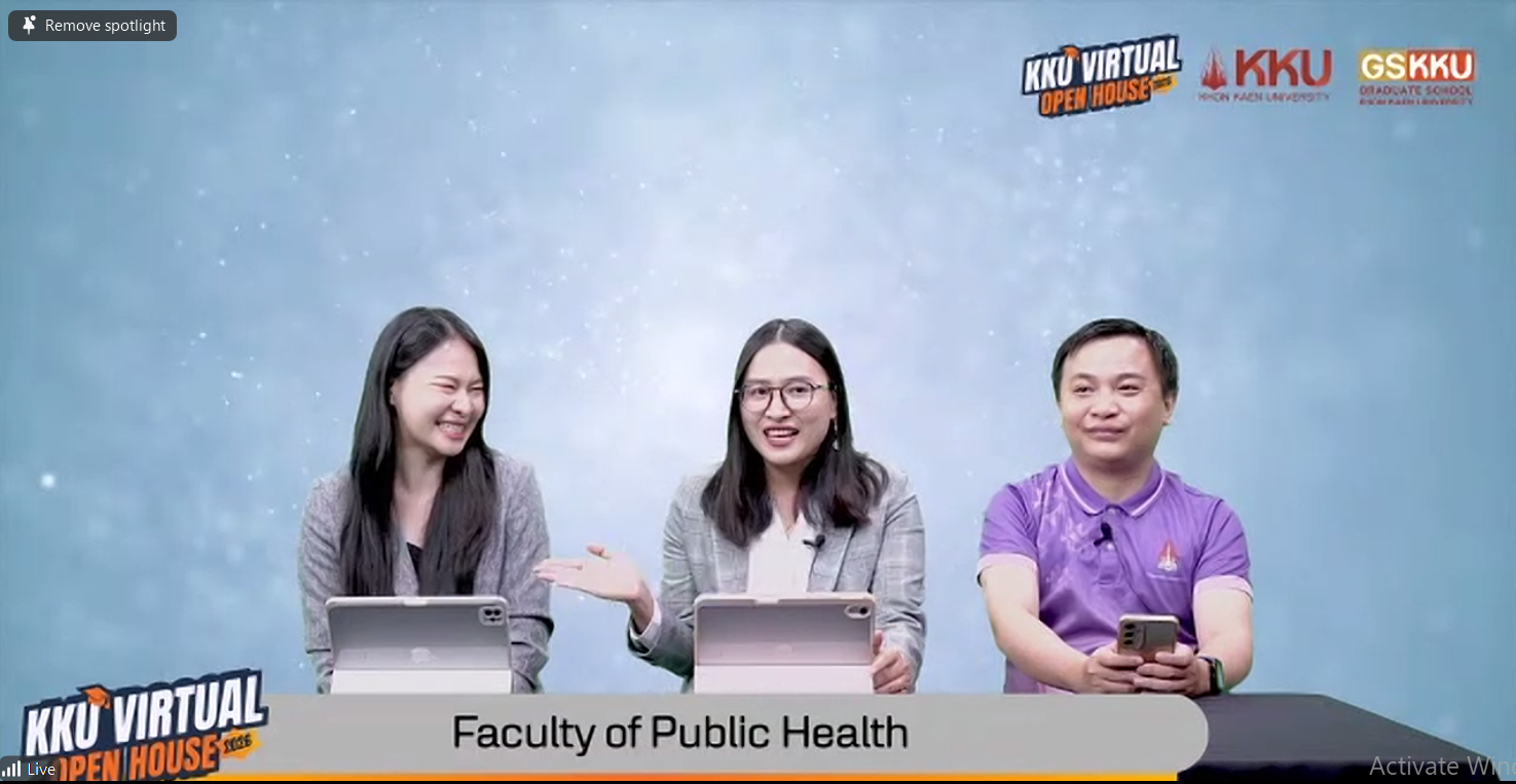 บัณฑิตวิทยาลัย ร่วมกับกองการต่างประเทศ มหาวิทยาลัยขอนแก่น จัดกิจกรรม KKU Virtual Open House 2026 เมื่อวันที่ 21–22 มกราคม 2569 เพื่อให้ข้อมูลการเข้าศึกษาต่อในมหาวิทยาลัยขอนแก่น แก่ผู้ที่สนใจเข้าศึกษาต่อจากทั่วโลก