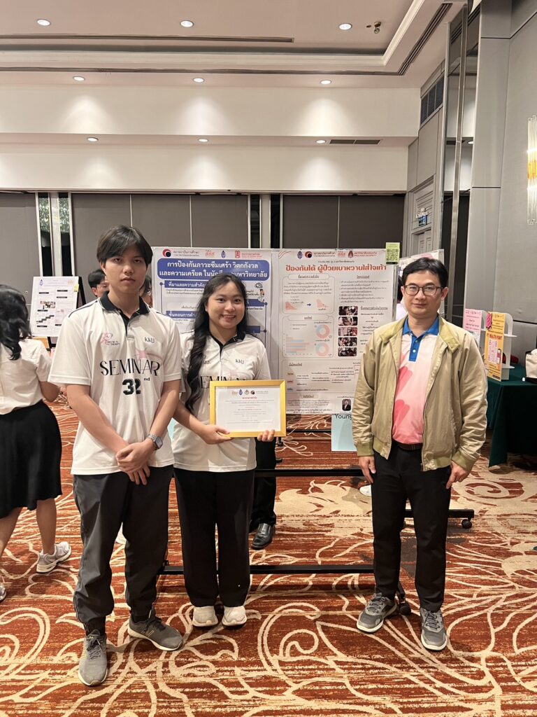 รางวัลดังกล่าวได้รับจากการเข้าร่วมนำเสนอผลงานในรูปแบบโปสเตอร์ เรื่อง“ป้องกันได้ ผู้ป่วยเบาหวานใส่ใจเท้า ชุมชนสามเหลี่ยม อำเภอเมือง จังหวัดขอนแก่น” ซึ่งเป็นผลงานภายใต้การดูแลของ อ.ดร.กภ.อธิพงศ์ พิมพ์ดี เป็นอาจารย์ที่ปรึกษา