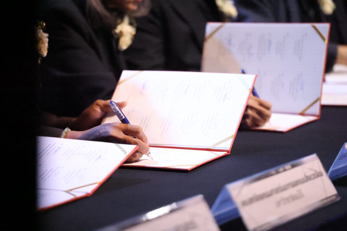 ภายหลังพิธีเปิด ได้มีพิธีลงนามความร่วมมือระหว่างคณบดีจากสถาบันเครือข่าย เพื่อแสดงเจตจำนงร่วมกันในการขับเคลื่อนการพัฒนาคุณภาพการศึกษา การวิจัย และการบริหารจัดการองค์กรสู่มาตรฐานความเป็นเลิศ สถาบันและคณะวิชาที่เข้าร่วมการประชุมในครั้งนี้ ประกอบด้วย