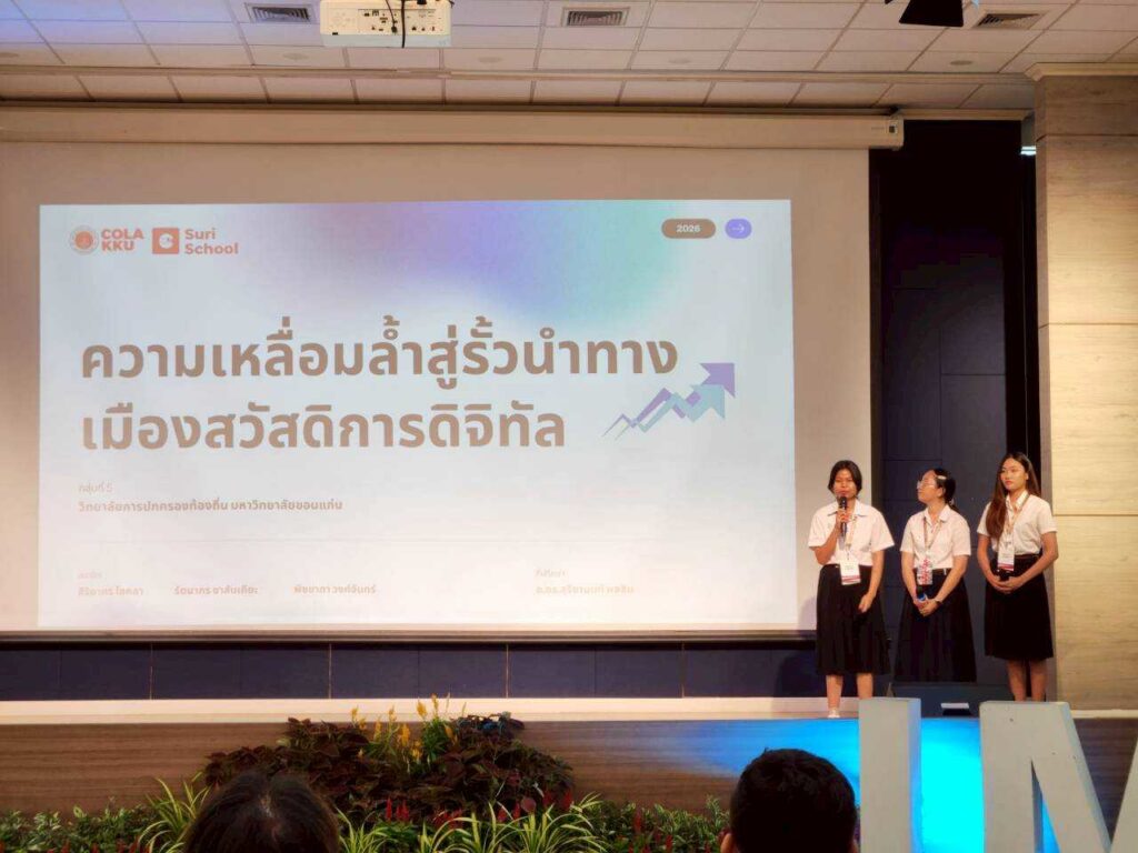 วิทยาลัยการปกครองท้องถิ่น มหาวิทยาลัยขอนแก่น ขอแสดงความยินดีกับนักศึกษาชั้นปีที่ 3 ที่สร้างชื่อเสียงในระดับประเทศ จากการแข่งขัน MAHANAKORN POLICY PITCH 2026 ชิงถ้วยเกียรติยศผู้ว่าราชการกรุงเทพมหานคร เมื่อวันที่ 31 มกราคม 2569 ณ อาคารเกษมศรี มหาวิทยาลัยนวมินทราธิราช