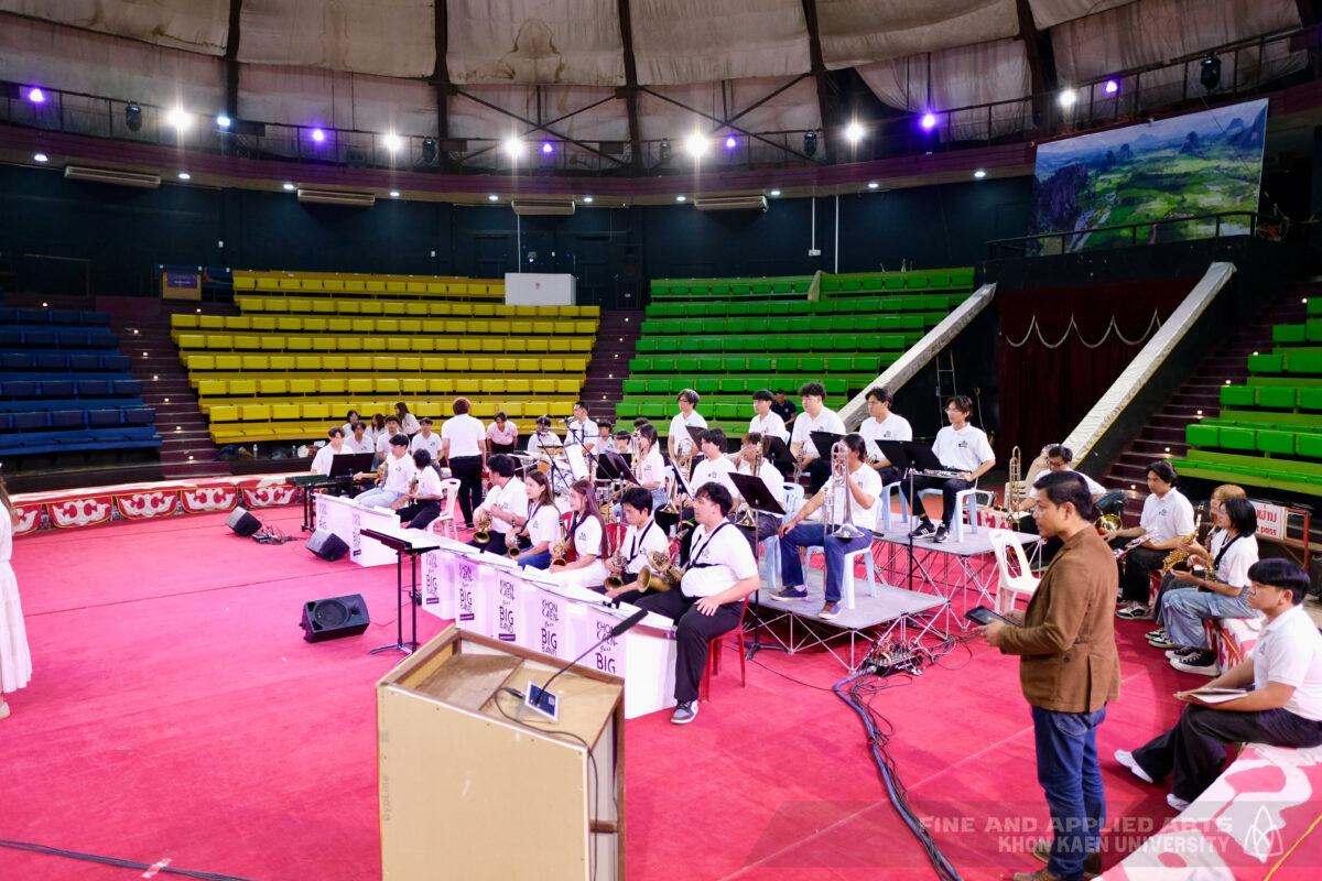 ผู้ช่วยศาสตราจารย์ ดร.ผจญ พีบุ้ง ประธานหลักสูตรดนตรีตะวันตก ประธานโครงการดนตรีสัญจร ยังกล่าวต่ออีกว่า “โครงการดนตรีสัญจรมีการออกแบบกิจกรรมที่ผสมผสานทั้งการแสดงดนตรีโดยวง KKU Band การแลกเปลี่ยนเรียนรู้ทางวิชาการด้านดนตรี และการประชาสัมพันธ์หลักสูตรดุริยางคศิลป์ เพื่อให้นักศึกษาได้พัฒนาทักษะที่จำเป็นต่อการเป็นนักดนตรีมืออาชีพ ไปจนถึงกิจกรรมการแสดงต่อสาธารณชนที่ช่วยเสริมสร้างความมั่นใจ วินัยวิชาชีพ และความเข้าใจในบทบาทหน้าที่ของตนเอง ขอเน้นย้ำว่านักศึกษาดนตรี คือพลังสำคัญที่จะนำพาศิลปวัฒนธรรมทางดนตรีของชาติสู่เวทีโลก ทุกการแสดง ทุกกิจกรรม ล้วนเป็นการสะสมประสบการณ์ที่มีคุณค่า ขอให้ทุกท่านมีความสุขกับการเรียนรู้ในครั้งนี้ และเติบโตไปพร้อมกับคณะศิลปกรรมศาสตร์ของเรา”