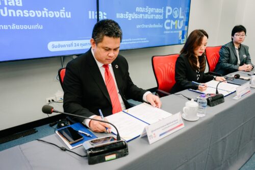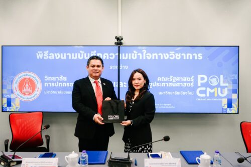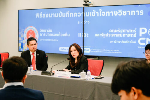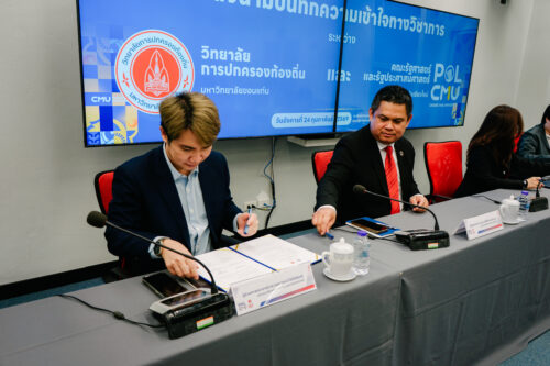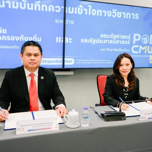 เมื่อวันที่ 24 กุมภาพันธ์ 2569 วิทยาลัยการปกครองท้องถิ่น มหาวิทยาลัยขอนแก่น นำโดย ผู้ช่วยศาสตราจารย์ ดร.ศิริศักดิ์ เหล่าจันทขาม คณบดีวิทยาลัยการปกครองท้องถิ่น พร้อมคณะผู้บริหาร คณาจารย์ และบุคลากร ได้ร่วมลงนามบันทึกความเข้าใจทางวิชาการ (Memorandum of Understanding: MOU) กับคณะรัฐศาสตร์และรัฐประศาสนศาสตร์ มหาวิทยาลัยเชียงใหม่ นำโดย รองศาสตราจารย์ ดร.ไพลิน ภู่จีนาพันธุ์ คณบดีคณะรัฐศาสตร์และรัฐประศาสนศาสตร์ พร้อมด้วยคณะผู้บริหาร คณาจารย์ และบุคลากรจากทั้งสองสถาบัน ณ ห้องประชุมยุทธศาสตร์ ชั้น 2 อาคาร 50 ปี คณะรัฐศาสตร์และรัฐประศาสนศาสตร์ มหาวิทยาลัยเชียงใหม่