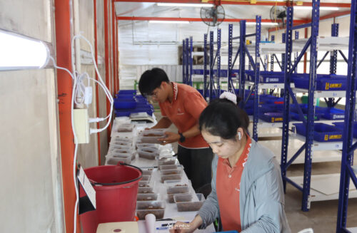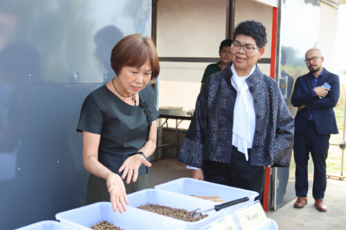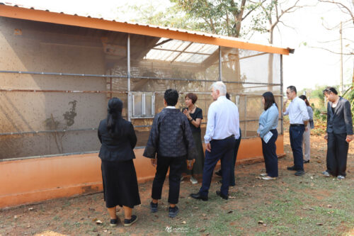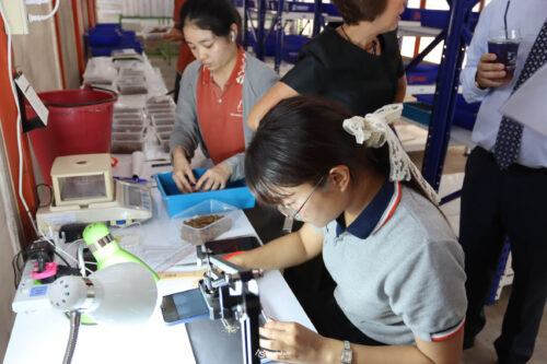 คณะผู้แทนได้เยี่ยมชมกระบวนการผลิตแมลง BSF ด้วย AI โดยมี ดร. ชุตินันท์ ชูสาย หัวหน้าหมวดแมลงอุตสาหกรรม ผู้ช่วยศาสตราจารย์ ดร.วิถี เหมือนวอน หัวหน้าสาขาวิชากีฏวิทยาและโรคพืชวิทยา และ อาจารย์ ดร. ปพิชญา เตียวกุล และนายปัญญา มัฆวาลย์ นักวิจัยอาวุโส ศูนย์วิจัยและพัฒนา บริษัท เบทาโกร จำกัด ร่วมให้ข้อมูลเกี่ยวกับการยกระดับประสิทธิภาพการผลิตอย่างครบวงจร