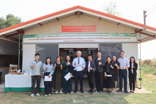รองศาสตราจารย์ ดร.ดรุณี โชติษฐยางกูร คณบดีคณะเกษตรศาสตร์ มหาวิทยาลัยขอนแก่น เผยว่า โครงการโรงเรือนต้นแบบผลิตแมลง BSF เป็นหนึ่งในงานวิจัยด้านเกษตรและอาหารแห่งอนาคต มุ่งพัฒนาแหล่งโปรตีนทางเลือกที่ยั่งยืน เป็นมิตรต่อสิ่งแวดล้อม และต่อยอดเชิงพาณิชย์ได้ โดยหนอน BSF สามารถย่อยสลายขยะอินทรีย์ ลดของเสีย เพิ่มมูลค่าทรัพยากร มีโปรตีนสูงใช้เป็นวัตถุดิบอาหารสัตว์ มีสารต้านจุลชีพ และกากเลี้ยงสามารถพัฒนาเป็นผลิตภัณฑ์ทางการแพทย์และปุ๋ยอินทรีย์ การเยี่ยมชมครั้งนี้สะท้อนความร่วมมือทางวิชาการไทย–เยอรมนี และศักยภาพของคณะเกษตรศาสตร์ มหาวิทยาลัยขอนแก่น ในการขับเคลื่อนนวัตกรรมเกษตรสู่ความยั่งยืนระดับสากล
