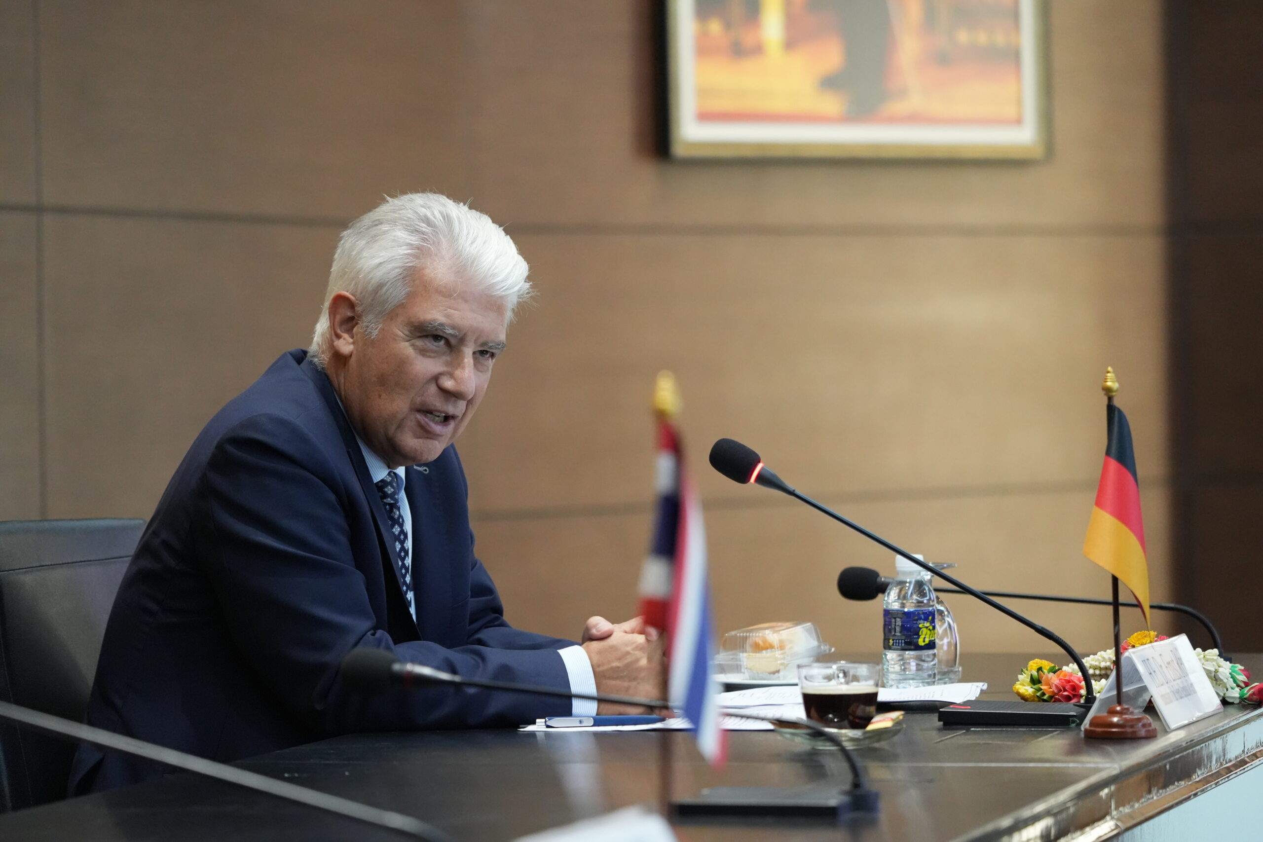 ภายหลังการประชุมหารือ เอกอัครราชทูตฯ ได้ให้เกียรติบรรยายพิเศษแก่นักศึกษาและบุคลากร ในหัวข้อความสัมพันธ์ไทย–เยอรมนี โดยเน้นย้ำบทบาทความร่วมมือด้านการศึกษา วิทยาศาสตร์ การวิจัย นวัตกรรม และความสัมพันธ์ระหว่างประเทศ พร้อมเปิดโอกาสให้นักศึกษาได้ร่วมแลกเปลี่ยนความคิดเห็นอย่างใกล้ชิด ณ วิทยาลัยนานาชาติ