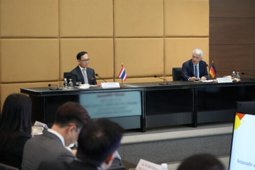 เอกอัครราชทูตฯ กล่าวเพิ่มเติมว่า จุดแข็งด้านวิชาการและการวิจัยของมหาวิทยาลัยขอนแก่นถือเป็นรากฐานสำคัญในการต่อยอดความร่วมมือกับสถาบันการศึกษาชั้นนำของสหพันธ์สาธารณรัฐเยอรมนี ทั้งในด้านการวิจัยร่วม การแลกเปลี่ยนนักศึกษาและนักวิจัย ตลอดจนการพัฒนานวัตกรรมเพื่อประโยชน์ต่อสังคม เชื่อมั่นว่า การหารือและการแลกเปลี่ยนความคิดเห็นในครั้งนี้ จะนำไปสู่การดำเนินความร่วมมือที่เป็นรูปธรรม และเสริมสร้างความสัมพันธ์ทางวิชาการระหว่างไทย–เยอรมนีให้แน่นแฟ้นยิ่งขึ้นในอนาคต