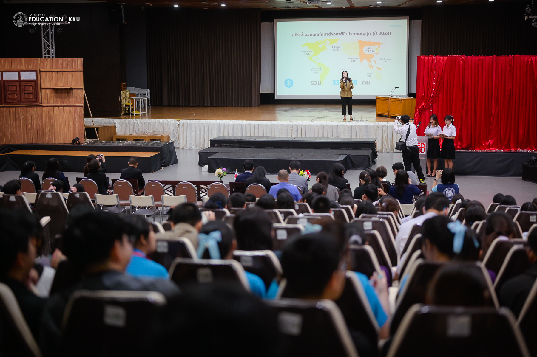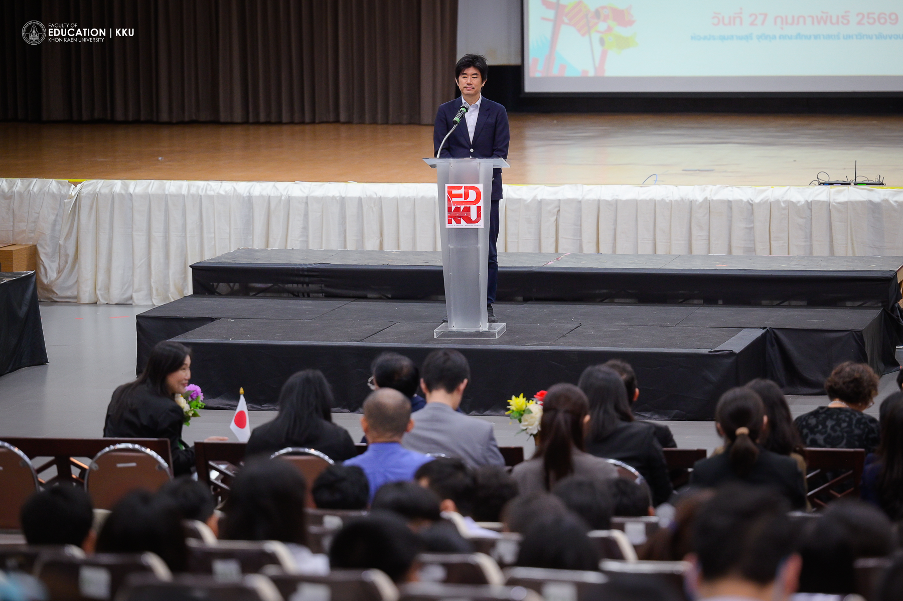 ในพิธีเปิดงานได้รับเกียรติจาก Mr. TANIMURA Takamasa เลขานุการเอก สถานเอกอัครราชทูตญี่ปุ่นประจำประเทศไทย เป็นประธานกล่าวเปิดงาน ท่านโดยได้เน้นย้ำถึงความสำคัญของการเตรียมความพร้อมสู่การเป็นพลเมืองโลกและความร่วมมือที่แน่นแฟ้นระหว่างมหาวิทยาลัยขอนแก่นและประเทศญี่ปุ่น โดยเฉพาะการส่งเสริมการศึกษาในสาขาวิชาสมัยใหม่ เช่น AI และเทคโนโลยีอวกาศ ซึ่งเป็นกำลังสำคัญในการขับเคลื่อนนวัตกรรมในอนาคต