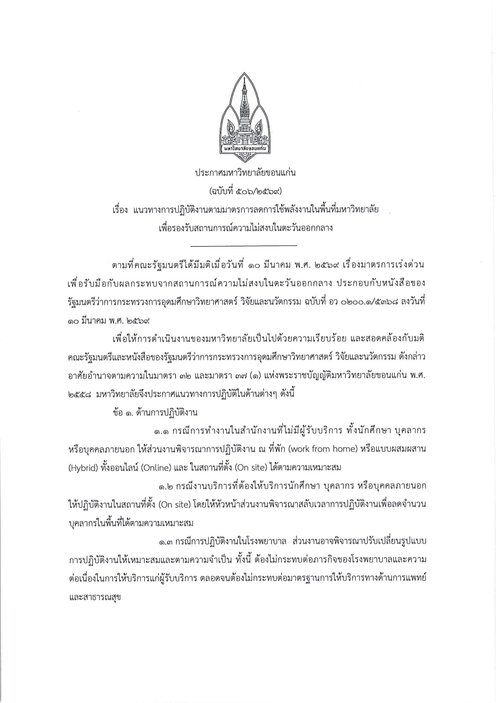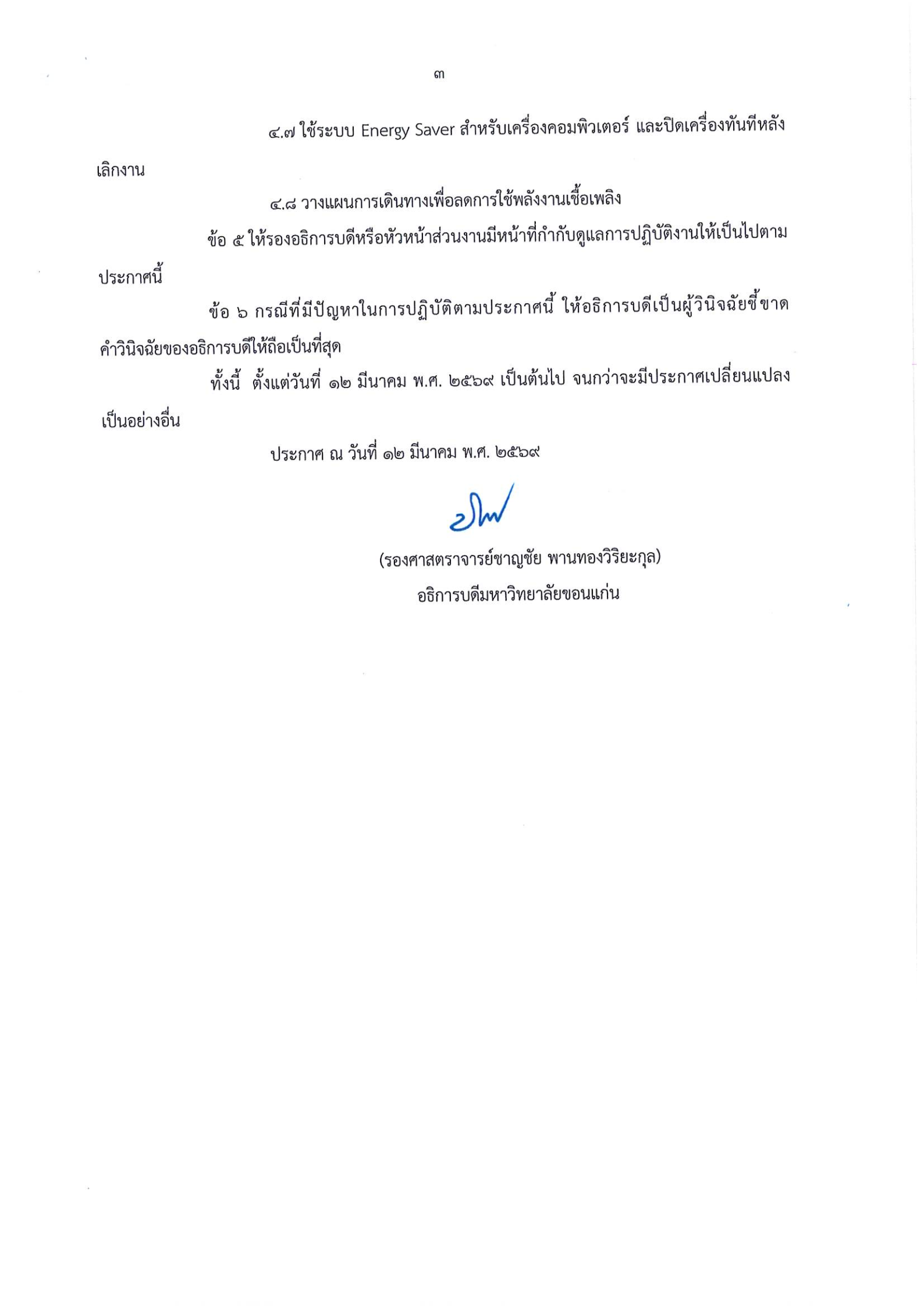 ประกาศมหาวิทยาลัยขอนแก่น เรื่อง แนวทางการปฏิบัติงานตามมาตรการลดการใช้พลังงานในพื้นที่มหาวิทยาลัย เพื่อรองรับสถานการณ์ความไม่สงบในตะวันออกกลาง