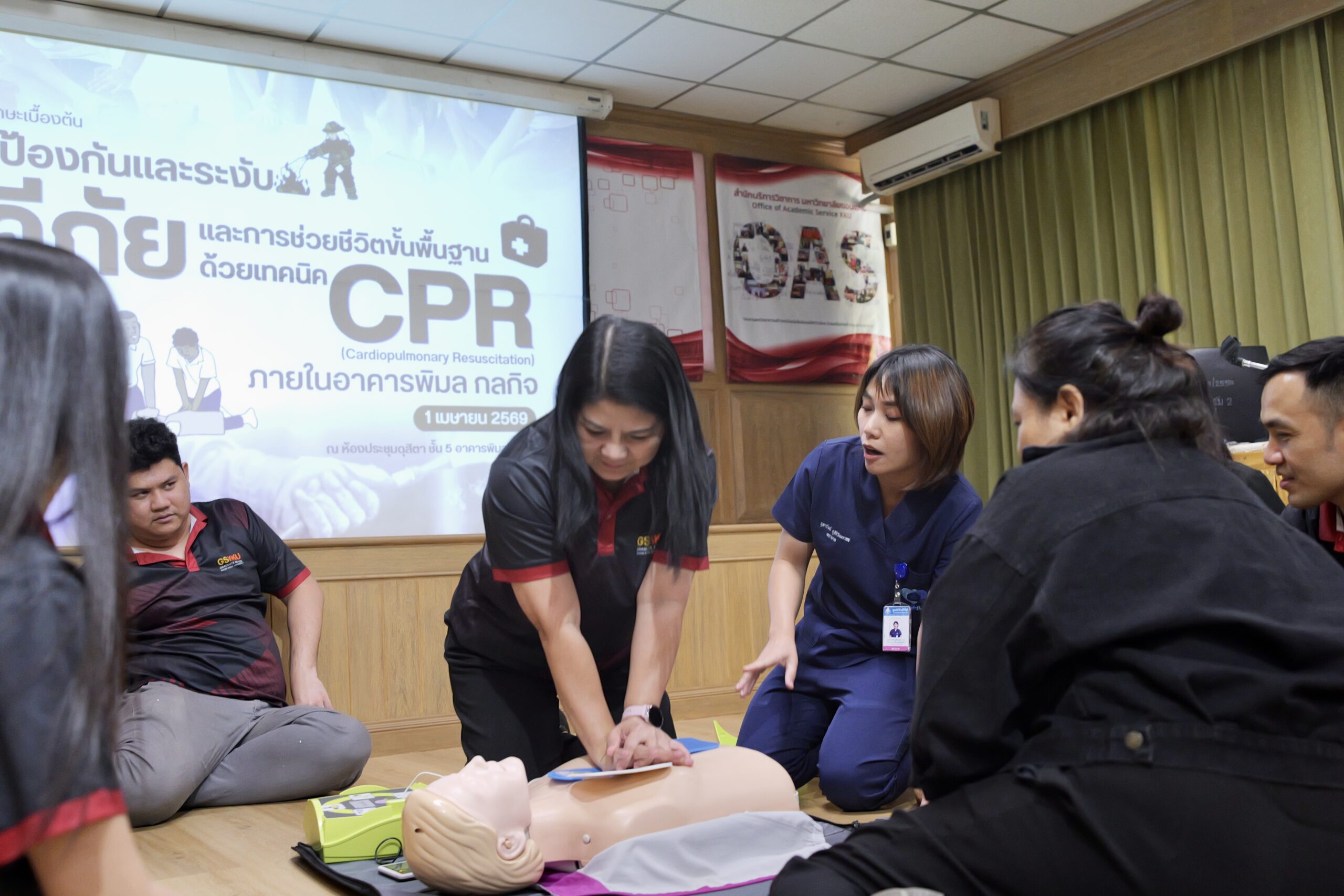 คณะกรรมการประสานงานประจำอาคารพิมล กลกิจ จัดโครงการอบรมทักษะเบื้องต้นด้านการป้องกันและระงับอัคคีภัย และการช่วยชีวิตขั้นพื้นฐาน (CPR & AED) ดึงทีมผู้เชี่ยวชาญจากกองป้องกันฯ และศูนย์หัวใจสิริกิติ์ฯ ติวเข้มบุคลากร 5 หน่วยงานหลักภายในอาคารพิมล กลกิจ หวังสร้างเกราะป้องกัน พร้อมรับมือเหตุฉุกเฉินทุกสถานการณ์