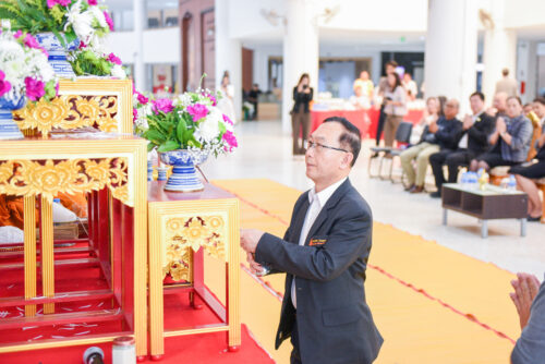 กิจกรรมเริ่มต้นด้วยการลงทะเบียนและต้อนรับแขกผู้มีเกียรติร่วมงาน จากนั้นเป็นพิธีเจริญพระพุทธมนต์ โดยได้รับความเมตตาจากพระราชประสิทธิคุณ วัดเทพปูรณาราม ต.ท่าพระ อ.เมือง ขอนแก่น เป็นประธานฝ่ายสงฆ์ พร้อมด้วยพระสงฆ์ จำนวน 7 รูป เพื่อความเป็นสิริมงคลแก่หน่วยงานและผู้เข้าร่วมงาน ต่อด้วยพิธีถวายภัตตาหารเพลแด่พระภิกษุสงฆ์ และในช่วงท้ายเป็นการพบปะเครือข่าย พร้อมรับประทานอาหารกลางวันร่วมกัน เพื่อเสริมสร้างความสัมพันธ์อันดีระหว่างผู้บริหาร บุคลากร และเครือข่ายความร่วมมือ