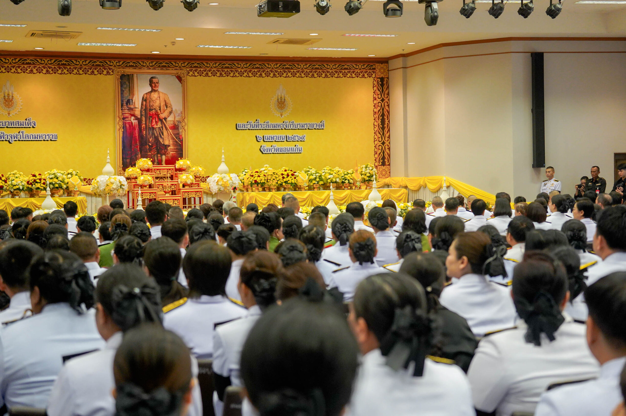 มหาวิทยาลัยขอนแก่น ร่วมประกอบพิธีวางพานพุ่มดอกไม้สดถวายราชสักการะ เนื่องใน “วันพระบาทสมเด็จพระพุทธยอดฟ้าจุฬาโลกมหาราช และวันที่ระลึกมหาจักรีบรมราชวงศ์” เพื่อน้อมรำลึกถึงพระมหากรุณาธิคุณของพระปฐมบรมกษัตริย์แห่งราชวงศ์จักรี และแสดงความจงรักภักดีต่อสถาบันพระมหากษัตริย์