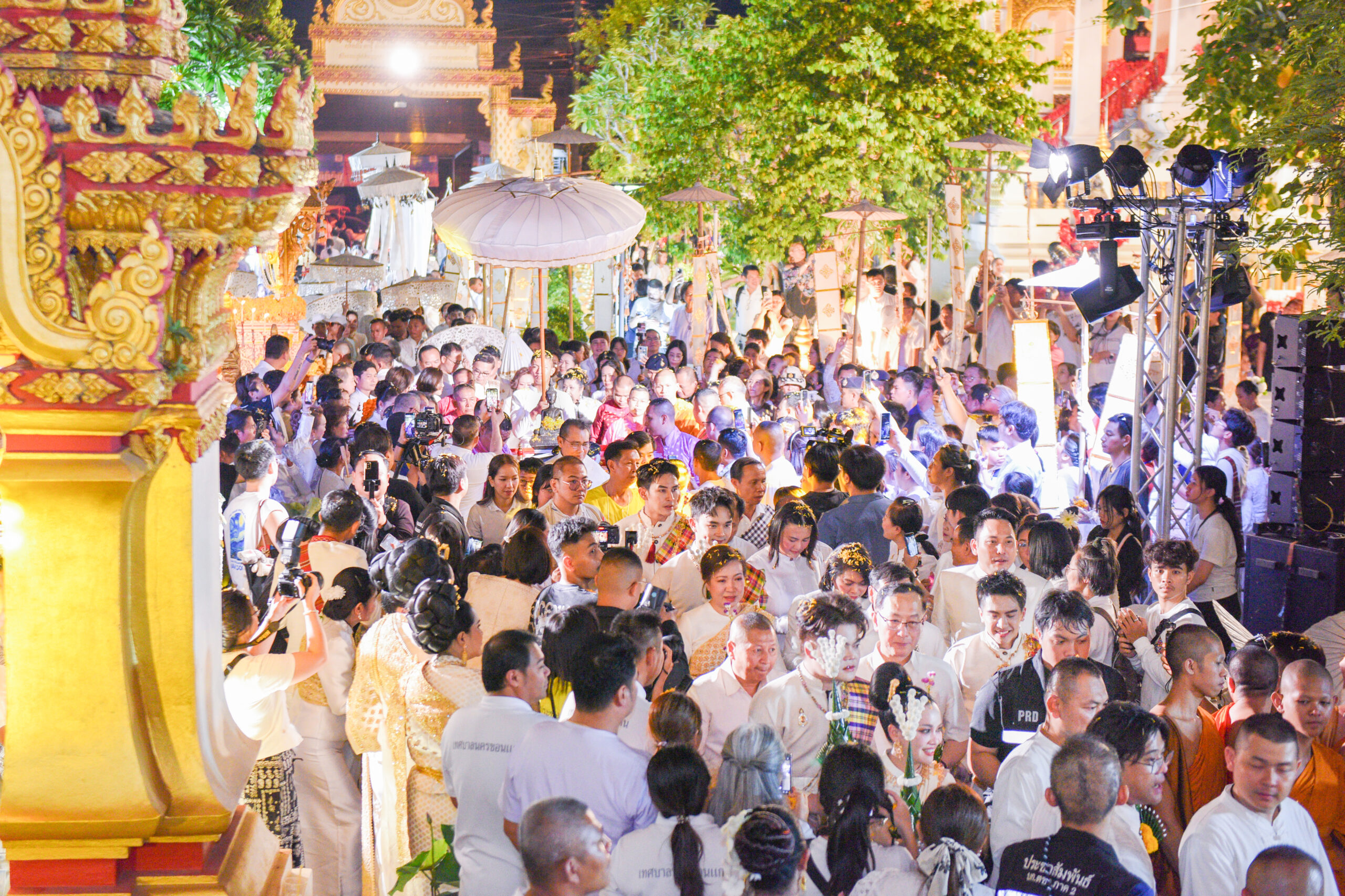 วันที่ 10 เม.ย. 2569 ณ วัดธาตุ พระอารามหลวง รศ.นพ.ชาญชัย พานทองวิริยะกุล อธิการบดีมหาวิทยาลัยขอนแก่น นำผู้บริหารมหาวิทยาลัย พร้อมด้วยบุคลากรและนักศึกษามหาวิทยาลัยขอนแก่น ร่วมพิธีอัญเชิญ “พระพุทธพระลับ” พระคู่บ้านคู่เมืองขอนแก่น ไปประดิษฐานภายในพระอุโบสถวัดธาตุ พระอารามหลวง เพื่อประกอบพิธีทางศาสนาเนื่องในประเพณีสงกรานต์ หรือวันขึ้นปีใหม่ไทย โดยได้รับเกียรติจาก นายขจรเกียรติ รักพานิชมณี ผู้ว่าราชการจังหวัดขอนแก่น เป็นประธานในพิธี ท่ามกลางบรรยากาศอันยิ่งใหญ่และเปี่ยมด้วยแรงศรัทธาของประชาชนจำนวนมาก พร้อมด้วยหัวหน้าส่วนราชการ ภาคเอกชน และประชาชนทั้งชาวไทยและชาวต่างชาติเข้าร่วมพิธีอย่างเนืองแน่น