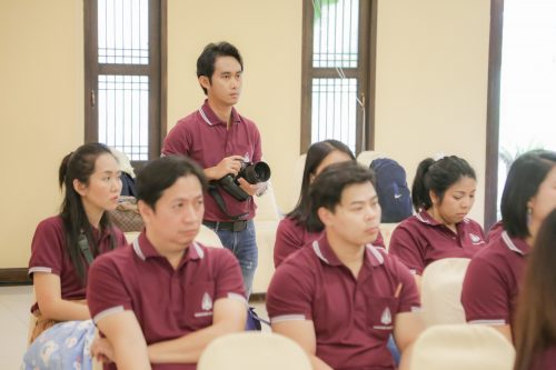 “เราพูดคุยกันเป็นประจำ เช่น เรามี weekly ทุกอาทิตย์ มีการประชุมอาทิตย์ละครั้ง หรือ 2 อาทิตย์ครั้ง กับผู้ที่เกี่ยวข้อง วิธีการประชุม คือ ให้บุคลากรสร้างหัวข้อที่เขาจะพูด ต่อจากนั้นจะให้พูดคุย แสดงข้อคิดเห็นของเขา ซึ่งเราจะนั่งฟังก่อน เมื่อฟังเสร็จแล้วจะปรึกษากันว่าเรามีความเห็นกับเขาอย่างไร ที่จะทำให้งานไปสู่เป้าหมาย หรือ จะแก้ปัญหาในจุดนั้นอย่างไร เพื่อให้เกิดการแก้ไขอย่างถูกต้อง”