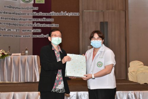 เมื่อวันที่ 26-27 ตุลาคม 2563 สถาบันวิจัยมะเร็งท่อน้ำดี มหาวิทยาลัยขอนแก่น ร่วมกับ ภาควิชารังสีวิทยา คณะแพทยศาสตร์ มหาวิทยาลัยขอนแก่น จัดฝึกอบรมเชิงปฏิบัติการ เรื่อง การตรวจคัดกรองมะเร็งท่อน้ำดีด้วยเครื่องอัลตราซาวด์สำหรับแพทย์ทั่วไป ครั้งที่ 2/2563 ณ โรงแรม อวานี ขอนแก่น โฮเทล แอนด์ คอนเวนชั่น เซ็นเตอร์ โดยมีแพทย์จากเขตสุขภาพที่ 7 8 9 และ 10 เข้าร่วมฝึกอบรม จำนวนกว่า 59 คน และงานนี้ได้รับเกียรติจาก พญ.ปรารถนา เชาว์ชื่น หัวหน้าภาควิชารังสีวิทยา คณะแพทยศาสตร์ มหาวิทยาลัยขอนแก่น เป็นประธานในพิธีเปิด