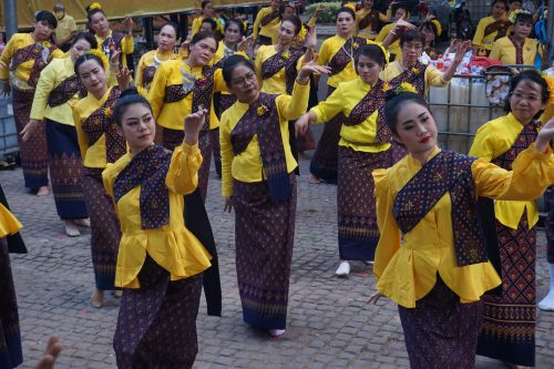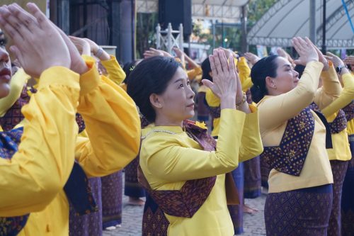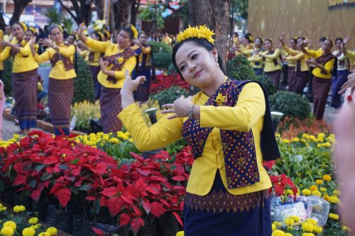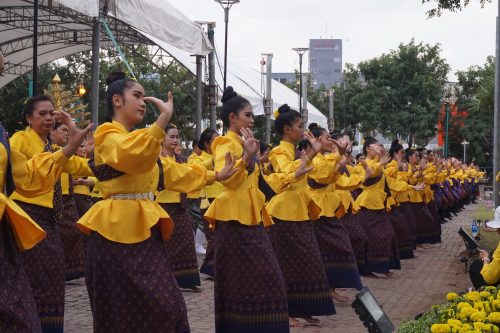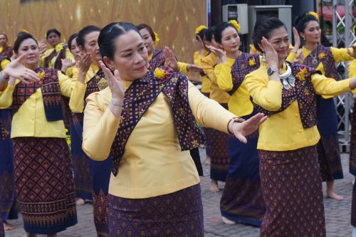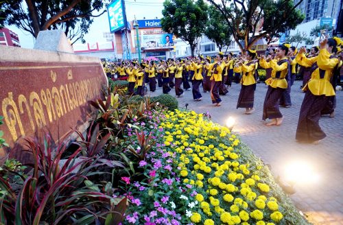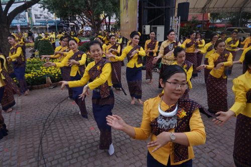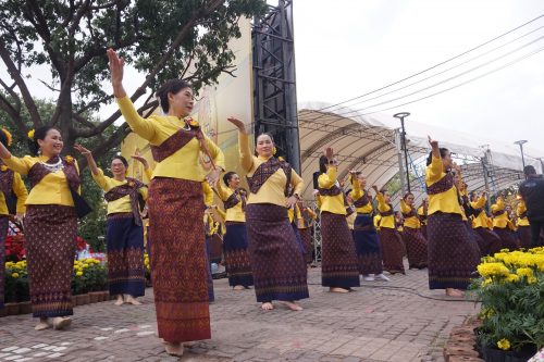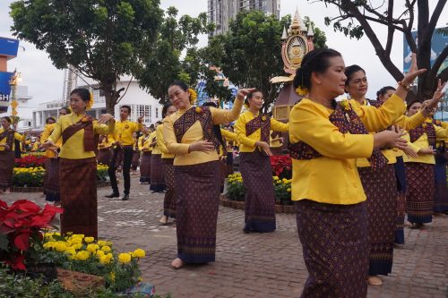 บรรยากาศของการมีส่วนร่วมของมหาวิทยาลัยขอนแก่น ณ บริเวณศาลหลักเมืองขอนแก่น ชาวมหาวิทยาลัยขอนแก่น ประกอบด้วย ผู้บริหารมหาวิทยาลัย ผู้อำนวยการ หัวหน้าส่วนงาน บุคลากร และนักศึกษา รวมทั้งบุตรหลานของบุคลากรที่มีความตั้งใจมาร่วมกิจกรรม ต่างแต่งกายตามที่จังหวัดขอนแก่นได้กำหนดไว้อย่างสวยงามมาจัดแถวรอการเริ่มพิธีการตั้งแต่เวลา 14.00 น.โดยมีบุคลากรจากกองสื่อสารองค์กรคอยอำนวยความสะดวกและบริการน้ำดื่มตลอดกิจกรรม จนเมื่อถึงเวลาพิธีทุกคนได้ตั้งใจร่ายรำตามจังหวะเพลงที่กำหนดไว้ร่วมกับตัวแทนหน่วยงานและประชาชนจำนวน 3 เพลง 2 รอบ คือ เพลงขอนแก่นวันนี้ เพลงฟ้อนผูกเสี่ยว และเพลงดอกคูนเสียงแคน ซึ่งในปีนี้มีผู้รำจำนวน 60,000 คน ผู้รำชายแต่งกายด้วยเสื้อเหลืองดอกคูน กางเกงดำ คาดเอวด้วยผ้าขาวม้าหรือผ้าลายแคนแก่นคูน ผู้รำหญิง แต่งกายด้วยเสื้อเหลืองดอกคูน ผ้าซิ่นลายมัดหมี่สีเข้ม หรือผ้าซิ่นลายแคนแก่นคูน พาดผ้าสไบลายแคนแก่นคูน เป็นภาพที่สวยงามและพร้อมเพรียงสะท้อนความตั้งใจที่แน่วแน่ของผู้มาร่วมงานทุกคน