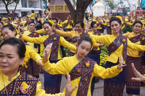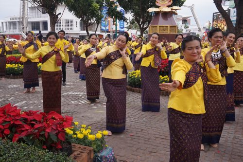 กิจกรรมได้พิธีเริ่มขึ้นในเวลา 16.30 น.นายสมศักดิ์ จังตระกุล ผู้ว่าราชการจังหวัดขอนแก่น เป็นประธานจุดธูปเทียนกล่าวคำบูชาสิ่งศักดิ์สิทธิ์ ศาลหลักเมือง และวางมาลัยกรบนพานหน้า10 สิ่งศักดิ์สิทธิ์คู่เมืองขอนแก่นตามลำดับ โดยก่อนหน้านั้นได้มีการซักซ้อมผู้เข้าร่วมกิจกรรมและกำกับขั้นตอนโดย นายธีระศักดิ์ ฑีฆายุพันธุ์ นายกเทศมนตรีนครขอนแก่นเป็นผู้ดำเนินการ ซึ่งนอกจากการรำบวงสรวงแล้วยังมีแปรอักษร KHONKAEN และลายขิดในกิจกรรมครั้งนี้ด้วย