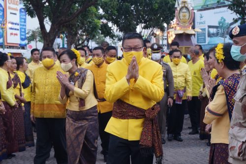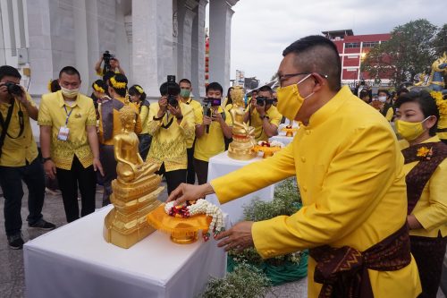 จังหวัดขอนแก่นโดยความร่วมมือของส่วนราชการและภาคเอกชนได้จัดพิธีรำบวงสรวง 10 สิ่งศักดิ์สิทธิ์คู่เมืองขอนแก่น ฉลอง 223 ปีเมืองขอนแก่น ในวันที่ 28 พฤศจิกายน 2563 เวลา 16.30 น. บริเวณศาลหลักเมืองขอนแก่น เพื่อความเป็นสิริมงคลและถือเป็นวาระของการเปิดงานเทศกาลไหมนานาชาติ ประเพณีผูกเสี่ยว และงานกาชาดจังหวัดขอนแก่น ประจำปี 2563 ซึ่งกำหนดจัดขึ้นเป็นประจำทุกปี ในช่วงระหว่างวันที่ 29 พฤศจิกายน-10 ธันวาคม ซึ่งปีที่ผ่านมาภาพ บรรยากาศของการรำบวงสรวงฯจากผู้รำจำนวน 6หมื่นคนที่พร้อมใจกันสวมใส่ชุดเสื้อเหลืองดอกคูน ผ้าซิ่นลายมัดหมี่สีเข้ม ผ้าไหมลายแคนแก่นคูน สไบลายแคนแก่นคูนได้ถูกเผยแพร่ออกไปอย่างยิ่งใหญ่ แสดงให้เห็นถึงพลังความสามัคคีและความมีศรัทธาที่ชาวขอนแก่นมีต่อสิ่งศักดิ์สิทธิ์คู่เมืองขอนแก่น กระตุ้นให้เกิดการส่งเสริมการท่องเที่ยวอย่างต่อเนื่องมา