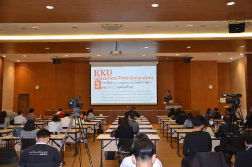 ในช่วงเช้าหลังจาก รองศาสตราจารย์ ดร.ประพันธ์ศักดิ์ ฉวีราช ผู้อำนวยการสำนักบริหารและพัฒนาวิชาการ กล่าวรายงานแล้ว เป็นการเปิดงานและบรรยายพิเศษ เรื่อง นโยบายและการขับเคลื่อน KKU Education Transformation โดยรองศาสตราจารย์ ดร.ไมตรี อินทร์ประสิทธิ์ รองอธิการบดีฝ่ายการศึกษาและบริการวิชาการ มหาวิทยาลัยขอนแก่น สรุปใจความสำคัญว่าตามที่มหาวิทยาลัยขอนแก่นมีโนบายการปรับเปลี่ยนด้านการจัดการศึกษา (KKU Education transformation) เพื่อมุ่งหวังให้หลักสูตรและการจัดการศึกษาของมหาวิทยาลัยเปลี่ยนแปลงสู่การจัดการศึกษาตามกระบวนทัศน์ใหม่ที่เน้นการเรียนรู้ หรือหลักสูตรที่พัฒนาขึ้นมาใหม่ที่เน้นการเรียนรู้ ตามองค์ประกอบ 5 ด้าน คือ การปรับเปลี่ยนพันธกิจและเป้าหมาย การปรับเปลี่ยนการสอนและโครงสร้างการเรียนรู้ การปรับเปลี่ยนการสอนและโครงสร้างการเรียนรู้ การปรับเปลี่ยนบทบาทของอาจารย์ และการปรับเปลี่ยนเกณฑ์การประเมินผลจากการประเมินผลการเรียนรู้เป็นการประเมินเพื่อการเรียนรู้ ซึ่งจะสามารถผลิตบัณฑิตและกำลังคนที่ตอบโจทย์ของประเทศและการเปลี่ยนแปลงในศตวรรษที่ 21 ตลอดจนการส่งมอบคุณค่าให้เกิดขึ้นกับผู้เรียนได้อย่างแท้จริง จึงจำเป็นต้องอาศัยความรู้ความเข้าใจให้ถ่องแท้และความร่วมมือของทุกหลักสูตร คณะ วิทยาลัยในการร่วมกันขับเคลื่อนให้เกิดขึ้นได้ตามเป้าประสงค์ที่วางไว้ร่วมกัน