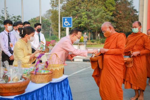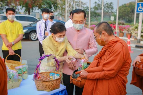 เช้าของวันจันทร์ ที่ 25 มกราคม 2564 รศ.นพ. ชาญชัย พานทองวิริยะกุล อธิการบดี มหาวิทยาลัยขอนแก่น พร้อมด้วยภริยา ดร.เอื้อนจิตร พานทองวิริยะกุล เป็นประธานในการจัดกิจกรรมทำบุญตักบาตรและเจริญพระพุทธมนต์ เนื่องในวันสถาปนา ครบรอบ 57 ปี มหาวิทยาลัยขอนแก่น ณ สำนักงานอธิการบดี อาคารสิริคุณากร ภายในงานมีคณะผู้บริหารและบุคลากร นักศึกษาเข้าร่วมอย่างพร้อมเพรียง อาทิเช่น รศ.ดร.กิตติชัย ไตรรัตนศิริชัย อดีตอธิการบดีมหาวิทยาลัยขอนแก่น พร้อมด้วยภริยา คุณจารุวรรณ ไตรรัตนศิริชัย ผศ.นพ.ธรา ธรรมโรจน์ รองอธิการบดีฝ่ายบริหาร รศ.ดร.เพียรศักดิ์ ภักดี รองอธิการบดีฝ่ายพัฒนานักศึกษาและศิษย์เก่าสัมพันธ์ รศ.ดร.เกรียงไกร กิจเจริญ รองอธิการบดีฝ่ายทรัพยากรบุคคล ผศ.ดร.เด่นพงษ์ สุดภักดี รองอธิการบดีฝ่ายดิจิตอล ผศ. อาวุธ แย้มแต้ รองอธิการบดีฝ่ายโครงสร้างพื้นฐาน รศ.ดร.นิยม วงศ์พงษ์คำ รองอธิการบดีฝ่ายศิลปวัฒนธรรมและเศรษฐกิจสร้างสรรค์ รศ.ดร.ไมตรี อินทร์ประสิทธิ์ รองอธิการบดีฝ่ายการศึกษาและบริการวิชาการ พร้อมด้วย ผู้ช่วยอธิการบดี คณบดี ผู้อำนวยการ บุคลากร และ นักศึกษา เข้าร่วม