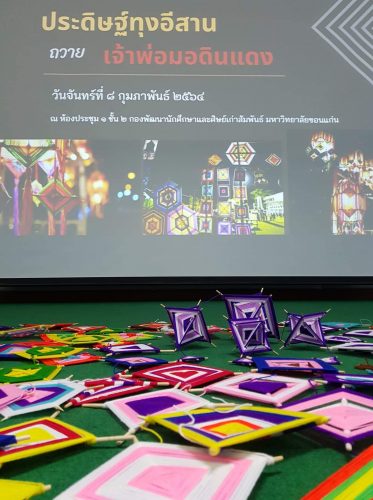 กิจกรรมประดิษฐ์ทุงใยแมงมุมเชิงปฏิบัติการในครั้งนี้ ได้รับความอนุเคราะห์วิทยากรจากศูนย์ศิลปวัฒนธรรม มข. ประกอบด้วย นางสาวนันทิดา เสือปู่ นางสาวสุรางคณา เฮ้ามาชัย และนิสิตนักศึกษาฝึกประสบการณ์วิชาชีพ มาให้ความรู้และบอกเล่าเทคนิคการประดิษฐ์ทุงสำหรับศิษย์เก่า นักศึกษาและบุคลากรที่เข้าร่วมกิจกรรม ที่ห้องประชุม 1 ชั้น 2 กองพัฒนานักศึกษาและศิษย์เก่าสัมพันธ์ เมื่อวันที่ 8 กุมภาพันธ์ 2564 ที่ผ่านมา