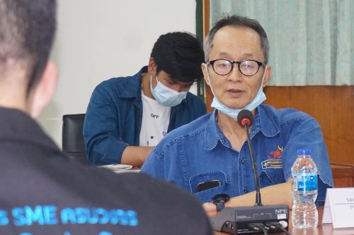 นาย พงษ์ศักดิ์ ภูนิลวาลย์ หัวหน้าส่วนฝ่ายศูนย์ให้บริการ SMEsครบวงจร สำนักงานส่งเสริมวิสาหกิจขนาดกลางและขนาดย่อม กลุ่มจังหวัดภาคตะวันออกเฉียงเหนือตอนกลาง เป็นผู้กล่าวนำการหารือโดยได้กล่าวว่า “ขอขอบคุณสถาบันวิจัยยุทธศาสตร์และประสานความร่วมมือเพื่อพัฒนาภาค ตะวันออกเฉียงเหนือ มหาวิทยาลัยขอนแก่นที่ให้การต้อนรับและให้องค์ความรู้ในครั้งนี้ เรื่องของจิ้งหรีดยังเป็นเรื่องใหม่ในส่วนกลาง แต่สำหรับในภาคอีสานแล้วถือว่า มข.ได้เดินหน้าทำเรื่องนี้ไปไกลมากแล้วแล้วยังเป็นการส่งเสริมที่มีมาตรฐาน ซึ่งบทบาทของ สสว.เราสามารถช่วยได้ตั้งแต่กลางน้ำไปจนถึงปลายน้ำเช่น รูปแบบกระบวนการบริหารการจัดการ ไทม์ไลน์การจัดเก็บ การคำนวณต้นทุน และยังรวมถึงการใช้บริการของ Central Lab” โดยในที่ประชุมได้มีการนำเสนอประเด็นปัญหากลุ่มคลัสเตอร์จิ้งหรีด ซึ่งเป็นปัญหาที่ต้องการให้เกิดความร่วมมือในการแก้ไขปัญหาโดยเฉพาะอย่างยิ่งในประเด็นปัญหาที่เกษตรกรในพื้นที่ไม่สามารถแก้ไขเองได้ เช่นการขาดมาตรฐานในการจัดการ ปัญหาแหล่งเงินทุนสนับสนุน องค์ความรู้ในการวางแผนการจัดการ
