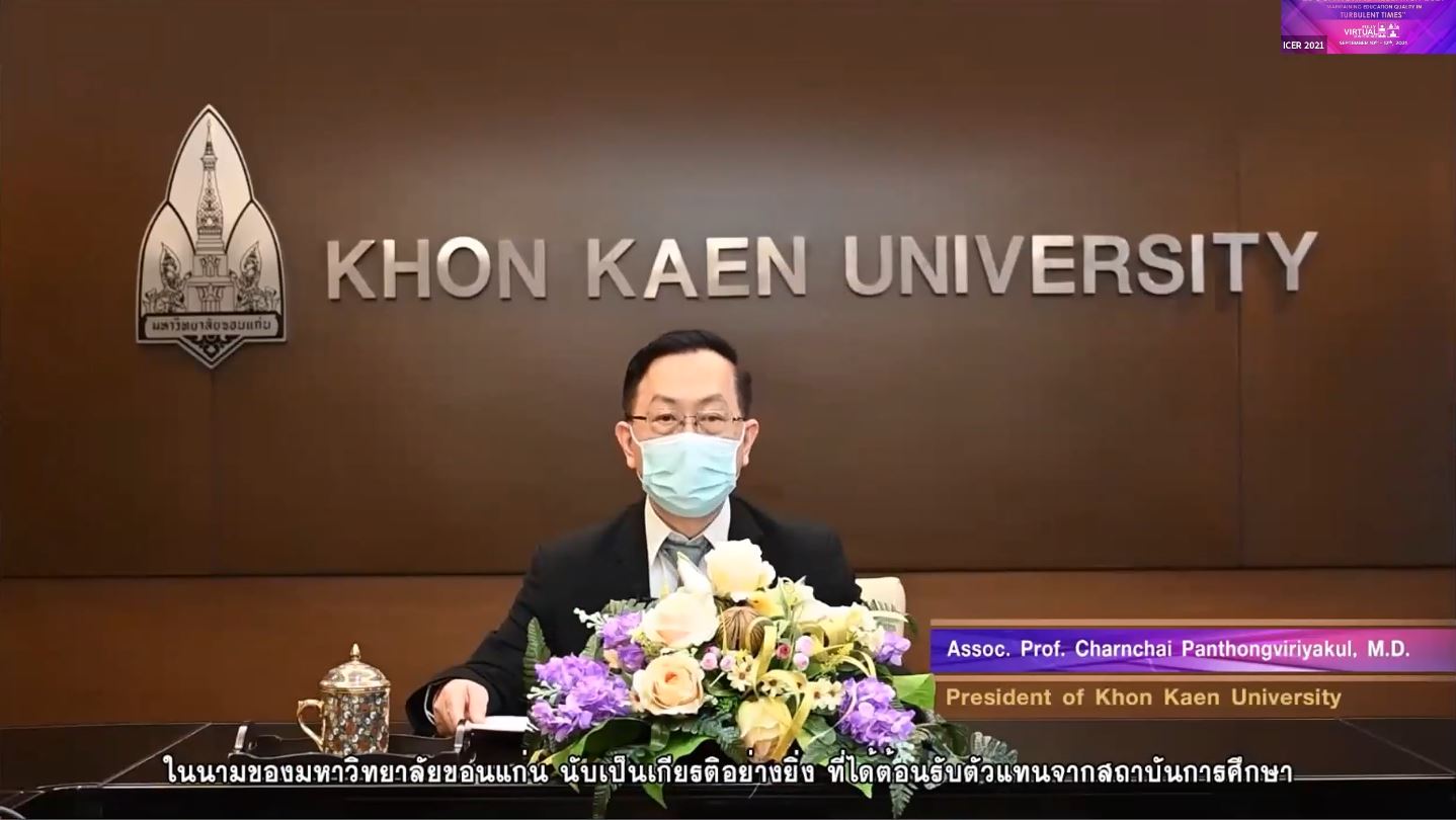 รศ. นพ.ชาญชัย พานทองวิริยะกุล อธิการบดีมหาวิทยาลัยขอนแก่น กล่าวว่า “การประชุมวิชาการนานาชาติ ICER 2021 เป็นพื้นที่ที่รวบรวมเอาผู้ทรงคุณวุฒิทางการศึกษา นักการศึกษา และนักวิจัย จากประเทศต่างๆ ตลอดจนคณาจารย์ นักศึกษาชาวไทย และผู้ที่สนใจและให้ความสำคัญของการพัฒนาการศึกษา ซึ่งการเข้าร่วมงาน ICER ในครั้งนี้ของนักวิชาการทุกท่าน แสดงให้เห็นถึงการให้ความสนใจและความมุ่งมั่นในการแลกเปลี่ยนและพัฒนาองค์ความรู้เพื่อก้าวสู่การเป็นสังคมแห่งการพัฒนาอย่างยั่งยืน ทั้งนี้ การมีส่วนร่วมและการสนับสนุนจากทุกท่าน นับเป็นอีกหนึ่งสัญญาณของความสำเร็จตามเป้าประสงค์ของการพัฒนาการศึกษาเพื่อสังคมที่ดีกว่าในอนาคต การประชุมวิชาการนานาชาติ ICER 2021 ได้รับความร่วมมือจากมหาวิทยาลัยเครือข่ายและหน่วยงาน ร่วมเป็นเจ้าภาพในการจัดงานได้แก่