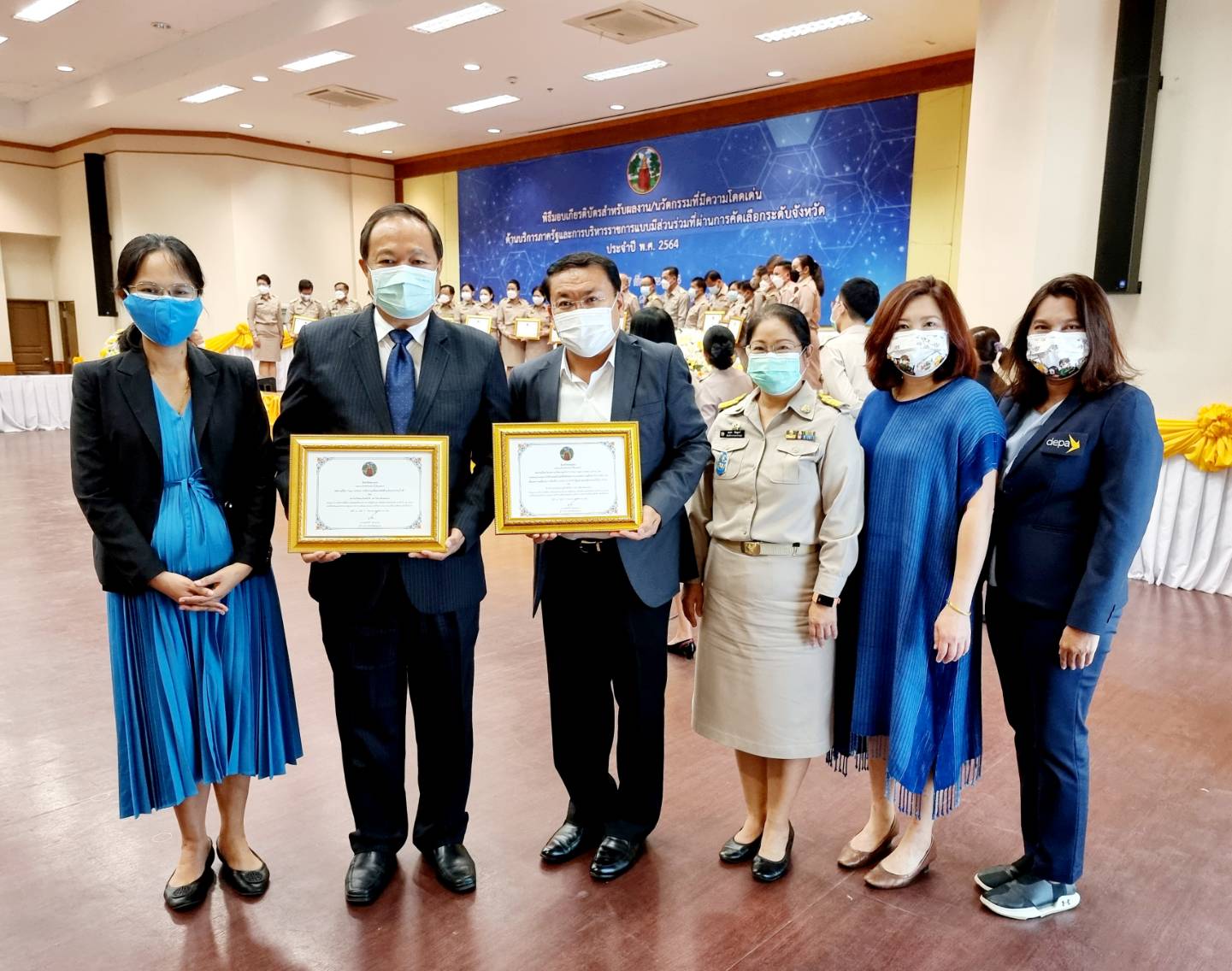เมื่อวันที่ 27 กันยายน 2564 ดร.สมศักดิ์ จังตระกุล ผู้ว่าราชการจังหวัดขอนแก่น ได้มอบเกียรติบัตรให้แก่ 3 หน่วยงานความร่วมมือ ได้แก่ สำนักงานส่งเสริมเศรษฐกิจดิจิทัล (depa), คณะวิทยาศาสตร์ มหาวิทยาลัยขอนแก่น และเทศบาลนครขอนแก่น เพื่อขอบคุณสำหรับผลงานนวัตกรรมที่มีความโดดเด่นในสาขาบริการภาครัฐและสาขาการบริหารราชการแบบมีส่วนร่วม ภายใต้โครงการนวัตกรรมบริการ Khon Kaen Smart Living Lab “คนขอนแก่นสุขภาพดีด้วยเทคโนโลยีดิจิทัลสุขภาพ และลดความถี่ในการไปโรงพยาบาลเพื่อลดความเสี่ยงในการติดเชื้อ COVID-19 สำหรับผู้สูงอายุและผู้ป่วยโรคเรื้อรัง NCDs”