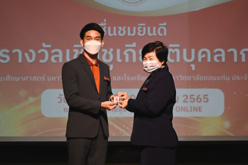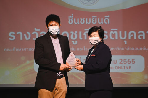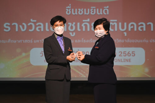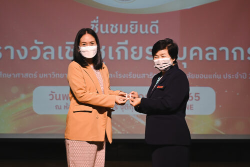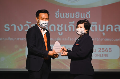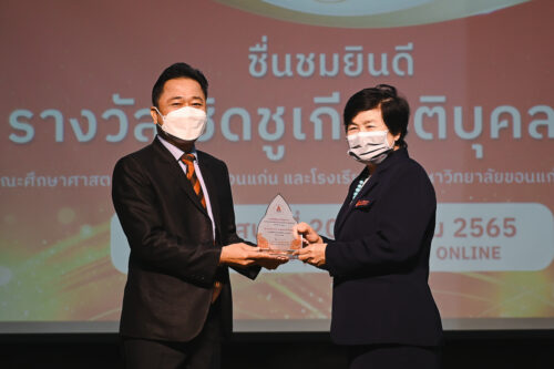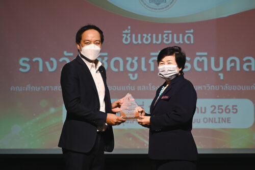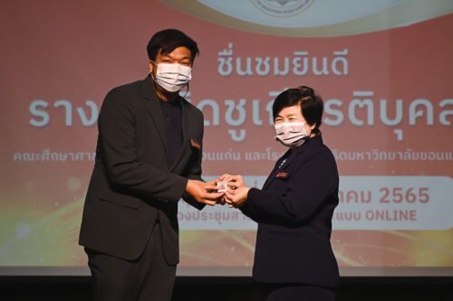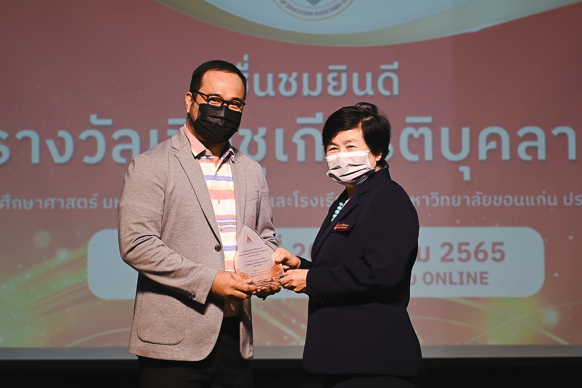 คณะศึกษาศาสตร์ มหาวิทยาลัยขอนแก่น จัดพิธีมอบรางวัล “เชิดชูเกียรติบุคลากร คณะศึกษาศาสตร์และโรงเรียนสาธิตมหาวิทยาลัยขอนแก่น” ประจำปี 2563 โดนได้รับเกียรติ รศ.ดร.สุมาลี ชัยเจริญ คณบดีคณะศึกษาศาสตร์ เป็นผู้มอบรางวัลแก่คณาจารย์และบุคลากร คณะศึกษาศาสตร์ และ โรงเรียนสาธิตมหาวิทยาลัยขอนแก่น เพื่อสร้างขวัญกำลังใจ สนับสนุน และส่งเสริมการปฏิบัติงาน  ให้เป็นแบบอย่างที่ดีต่อไป พร้อมทั้งมอบเข็มบัวแก้ว แก่คณาจารย์และบุคลากรที่บรรจุใหม่ทั้งสังกัดคณะศึกษาศาสตร์และโรงเรียนสาธิตมหาวิทยาลัยขอนแก่น เมื่อวันที่ 20 มกราคม 2565 ณ ห้องประชุมสายสุรี จุติกุล คณะศึกษาศาสตร์และแบบ Online ผ่านระบบ Zoom Meeting