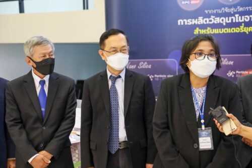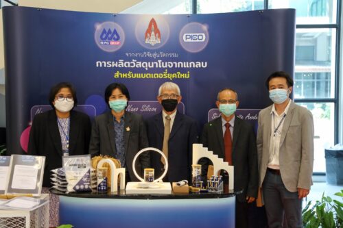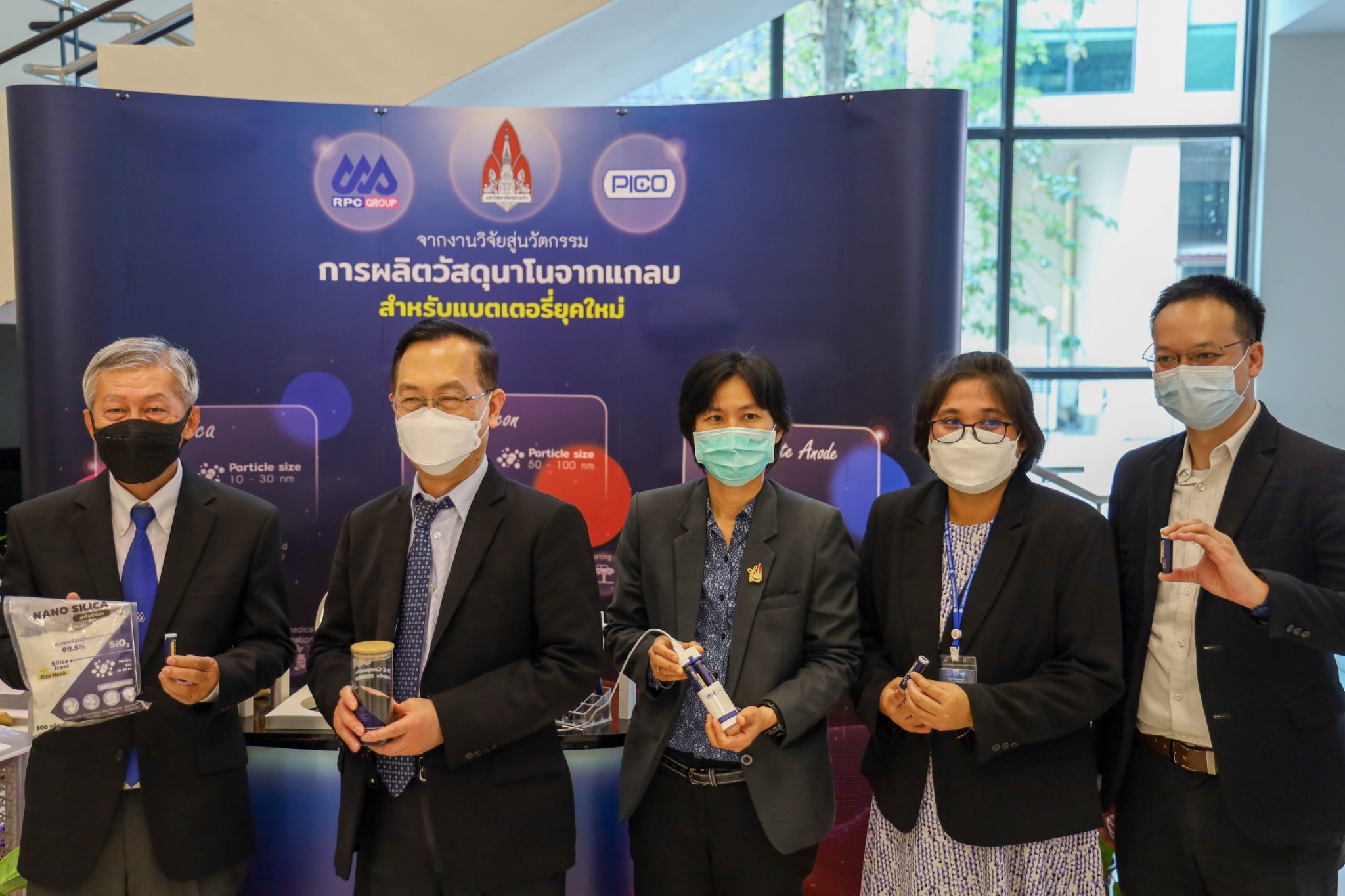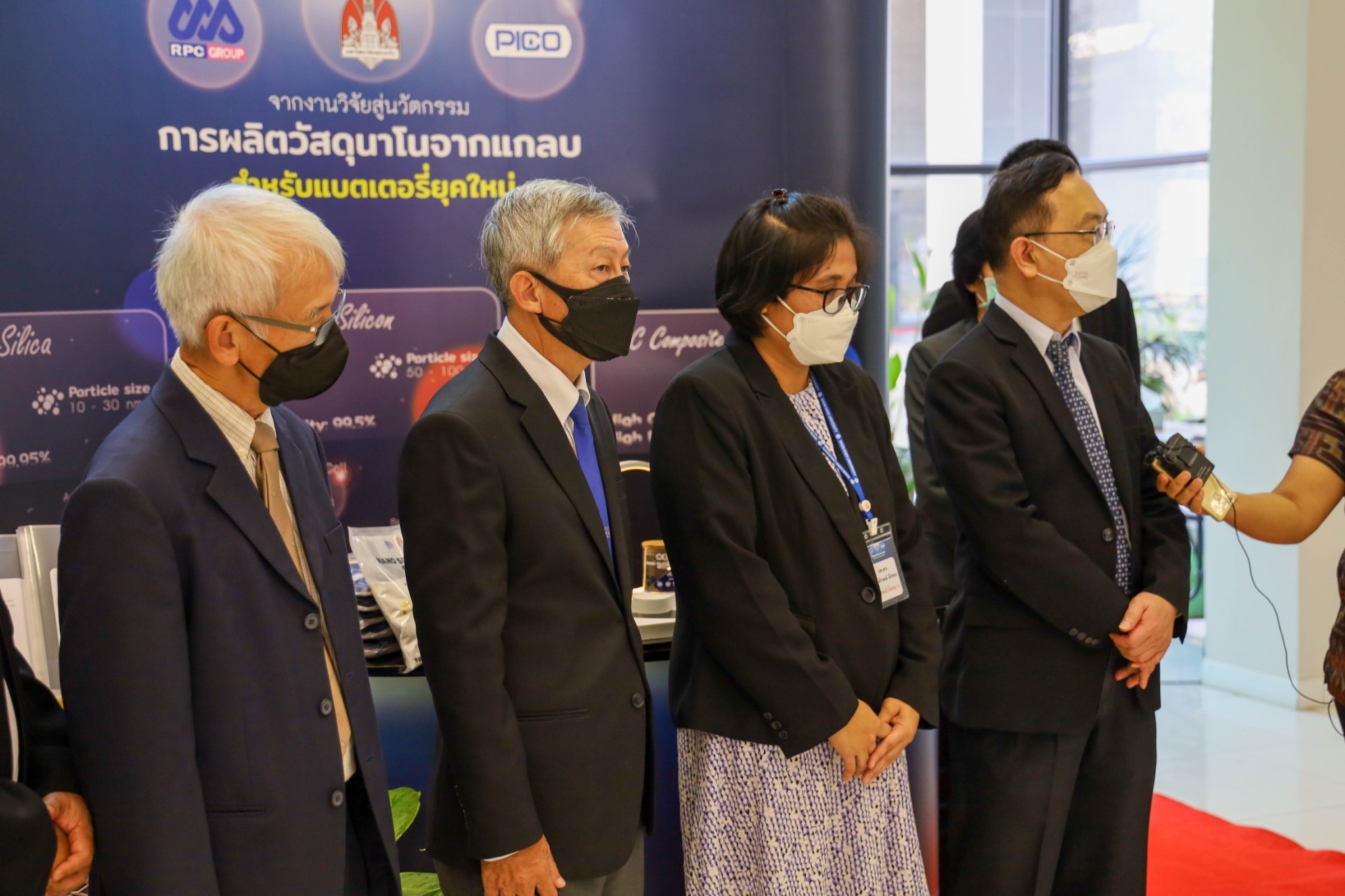 เมื่อวันพฤหัสบดีที่ 10 กุมภาพันธ์ 2565 มหาวิทยาลัยขอนแก่น จัดงานแถลงข่าว “จากงานวิจัยด้านการผลิตวัสดุนาโนจากแกลบสู่นวัตกรรมแบตเตอรี่ยุคใหม่” ภายใต้โครงการโรงงานต้นแบบผลิตวัสดุสำหรับทำขั้วไฟฟ้าในแบตเตอรี่ ชนิดลิเทียมไอออนระดับเซลล์ โดยได้รับเกียรติจาก รศ.นพ.ชาญชัย พานทองวิริยะกุล อธิการบดีพร้อมด้วย รศ.ดร.นงลักษณ์ มีทอง หัวหน้าโครงการ นำเสนอการดำเนินงานพร้อมกับส่งมอบผลสัมฤทธิ์จากโครงการวิจัย พร้อมด้วย คุณสัจจา เจนธรรมนุกูล ประธานกรรมการ คุณกัลยา คล้ายทอง ผู้จัดการทั่วไปฝ่ายพัฒนาธุรกิจ บริษัท อาร์พีซีจี จำกัด (มหาชน) และ คุณอัคธัช ชวนะพงศ์ กรรมการผู้อำนวยการ บริษัท เพทโทร-อินสตรูเมนท์ จำกัด และคณะผู้บริหารมหาวิทยาลัยขอนแก่น ร่วมแถลงข่าวสรุปผลการดำเนินงานโครงการ โดยมีสื่อมวลชนและผู้ที่สนใจร่วมงานจำนวน 50 คน ภายใต้การควบคุมโรคระบาดอย่างเคร่งครัด ณ ห้องประชุม 3 อาคารอุทยานวิทยาศาสตร์ มหาวิทยาลัยขอนแก่น