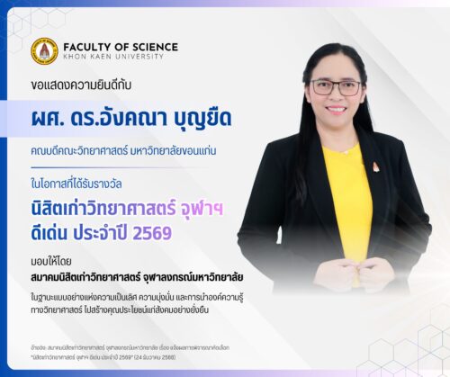 ผศ. ดร.อังคณา บุญยืด คณบดีคณะวิทยาศาสตร์ มข. คว้ารางวัล “นิสิตเก่าวิทยาศาสตร์ จุฬาฯ ดีเด่น ประจำปี 2569 29/12/2025 13:42 น.