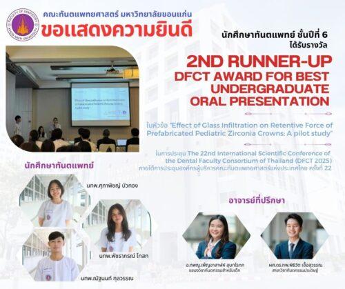 ขอแสดงความยินดี! นศ.ทันตแพทย์ มข. คว้ารางวัลวิชาการจากงานประชุม The 22nd DFCT Conference 18/11/2025 10:20 น.