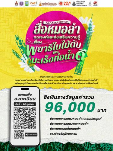 สถาบันวิจัยมะเร็งท่อน้ำดี มข.ขอเชิญส่งผลงาน “สื่อหมอลำรณรงค์และส่งเสริมความรู้เรื่องพยาธิใบไม้ตับและมะเร็งท่อน้ำดี” เข้าประกวดชิงรางวัลร่วมแสน 6 ตุลาคม 2025 14:10 น.