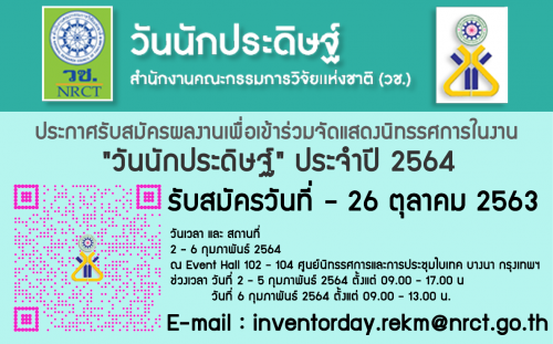 ประกาศรับสมัครผลงานเพื่อเข้าร่วมจัดแสดงนิทรรศการในงาน “วันนักประดิษฐ์” ประจำปี 2564 07/10/2020 13:41 น.