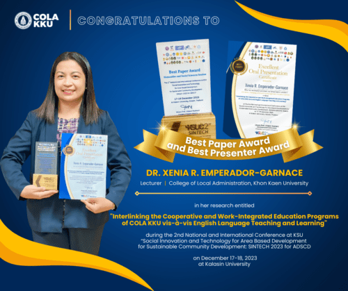 อาจารย์ COLA คว้า 2 รางวัลใหญ่ จากเวทีประชุมวิชาการระดับชาติและนานาชาติ KSU SINtech 2023 for ADSCD Hybrid Conference 19/01/2024 16:16 น.