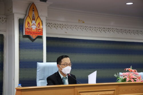 อธิการบดีให้โอวาทนักศึกษาขอให้มีกำลังใจมุมานะสร้างความสำเร็จให้ชีวิตและเผื่อแผ่สังคม ในงานปฐมนิเทศนักศึกษาทุนระดับปริญญาตรี ปีการศึกษา 2564 04/11/2021 10:24 น.